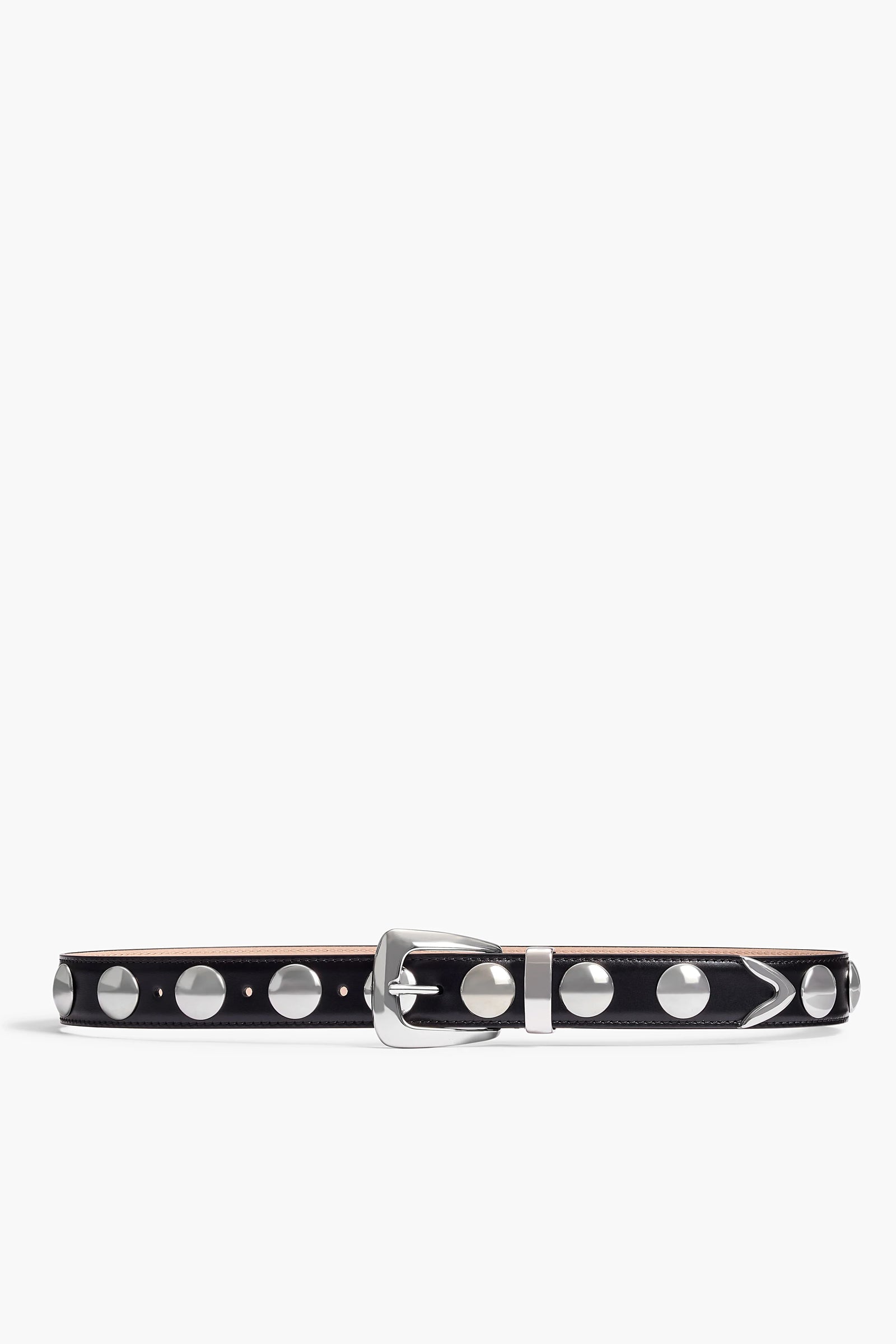 Benny Belt fra Khaite er et sofistikert belte som kombinerer edgy detaljer med tidløs eleganse. Laget av eksklusivt kalveskinn skiller dette beltet seg ut med sine markante studs og en iøyenfallende spenne - perfekt for å løfte hverdagsantrekket.