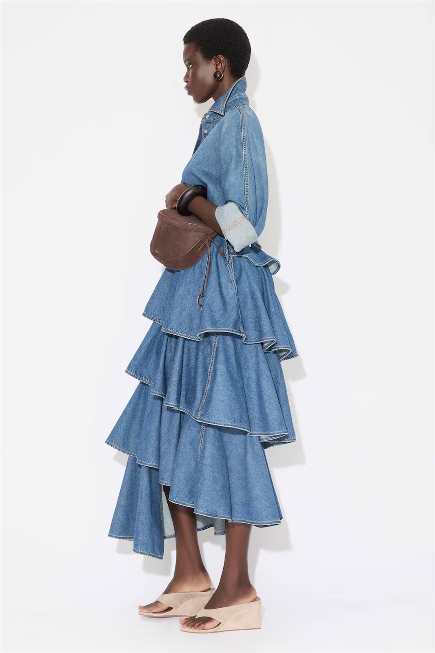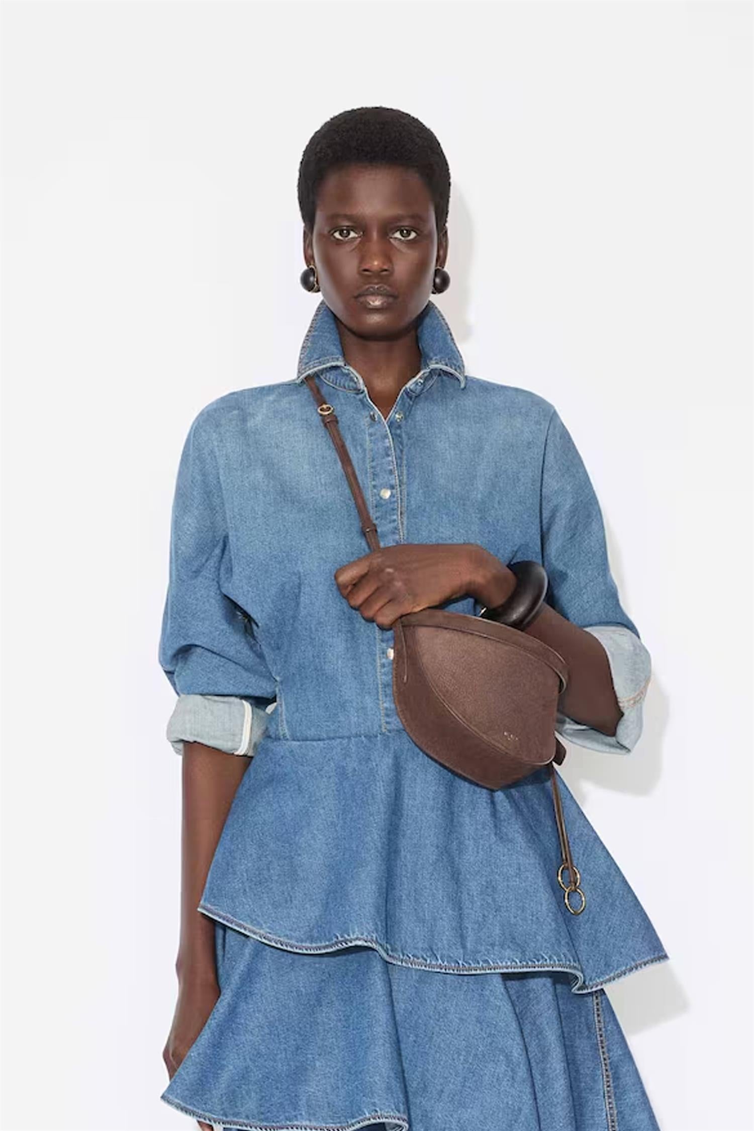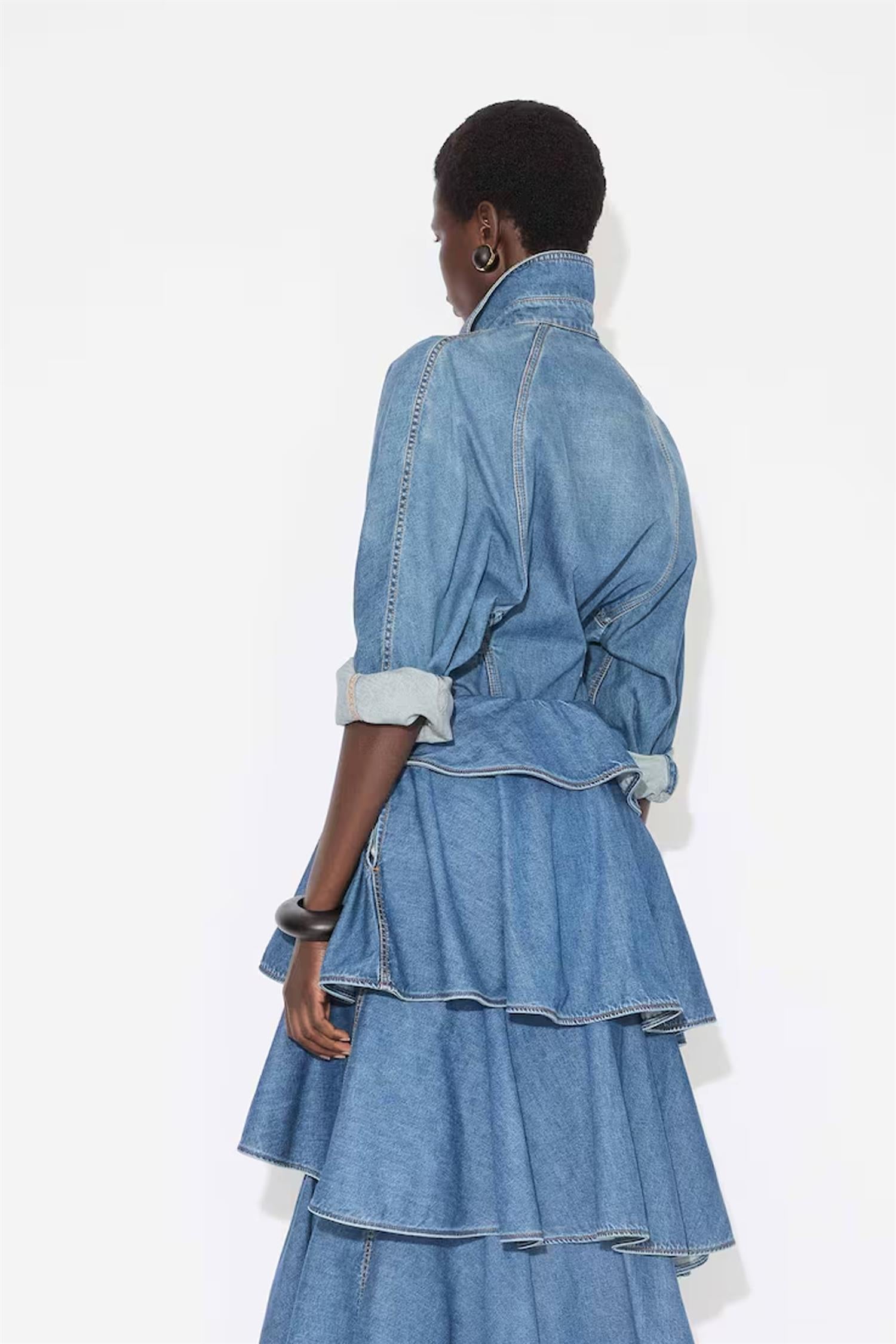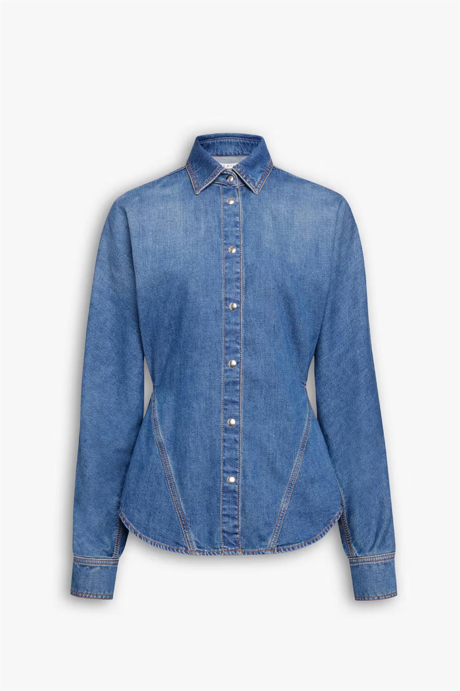 Denim-skjorte fra Alaïa med volum i ermer og innsnevret midje.