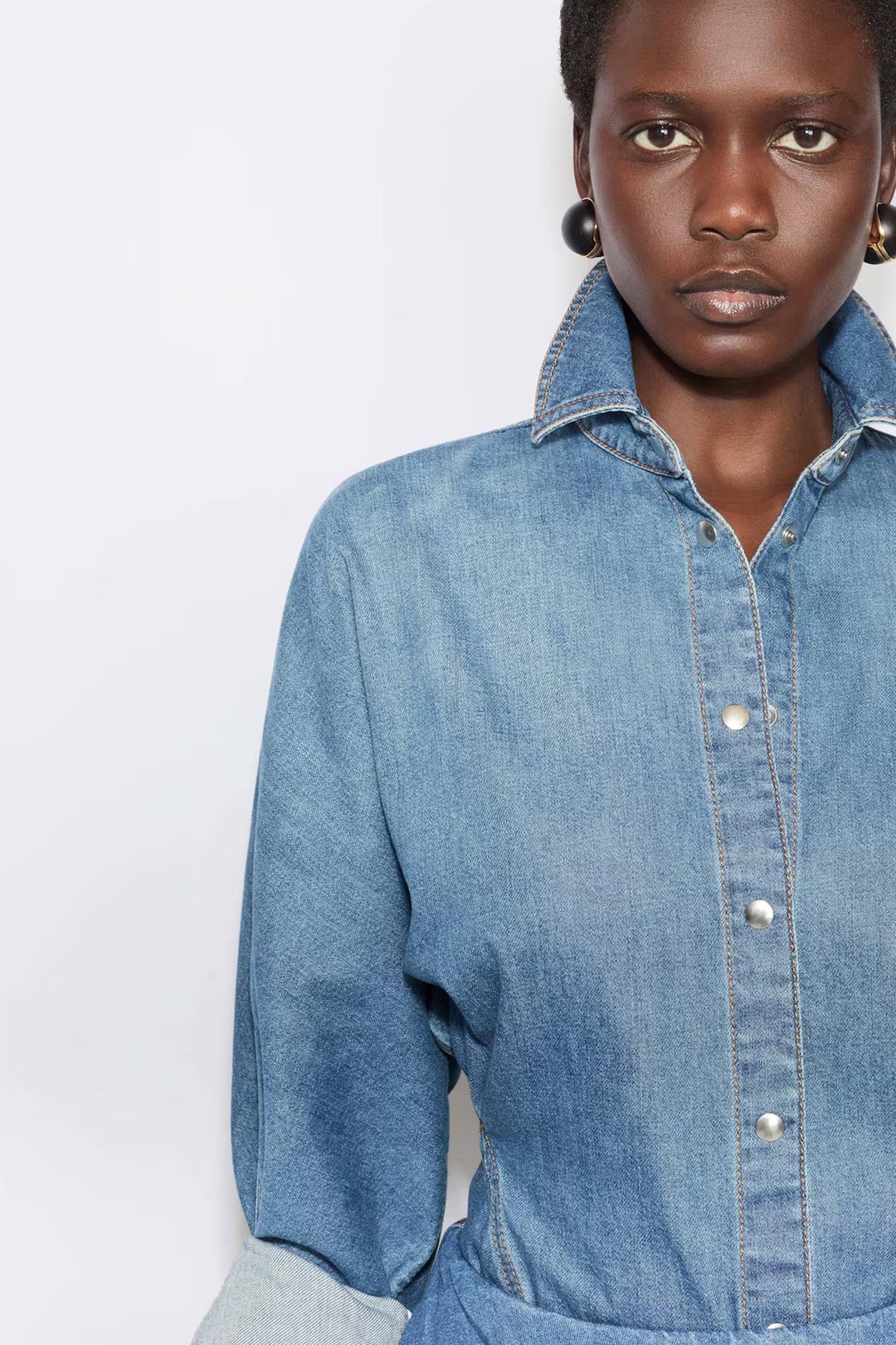 Round denim shirt
