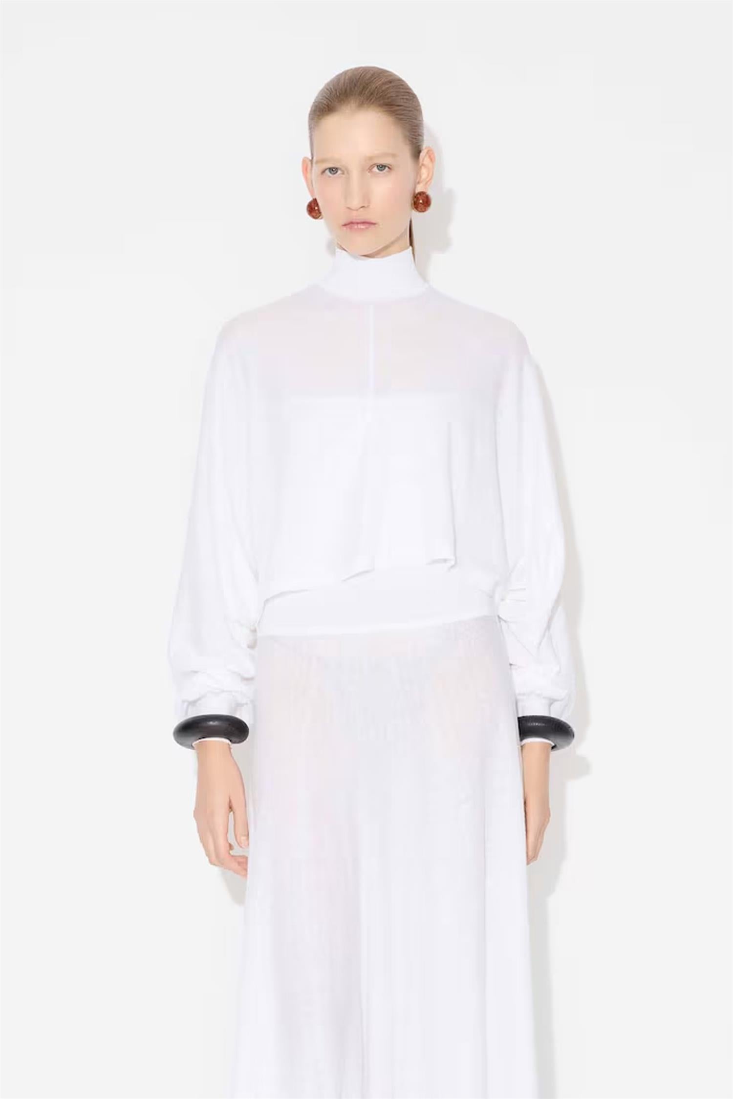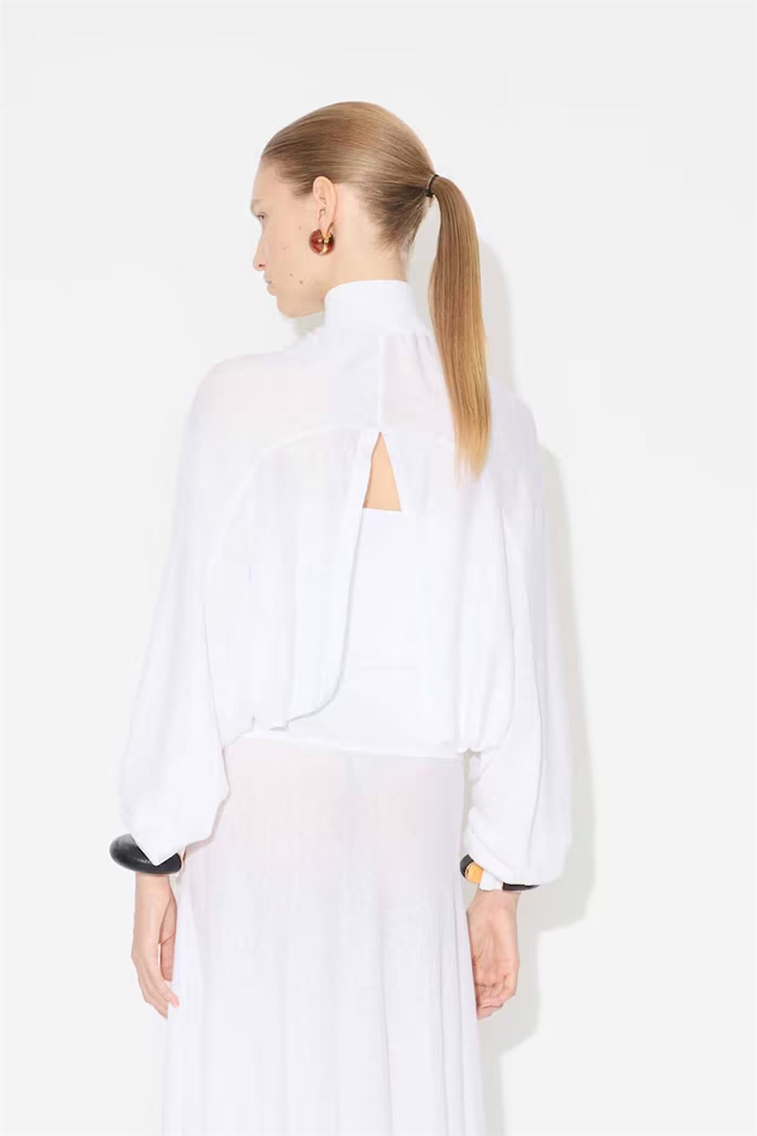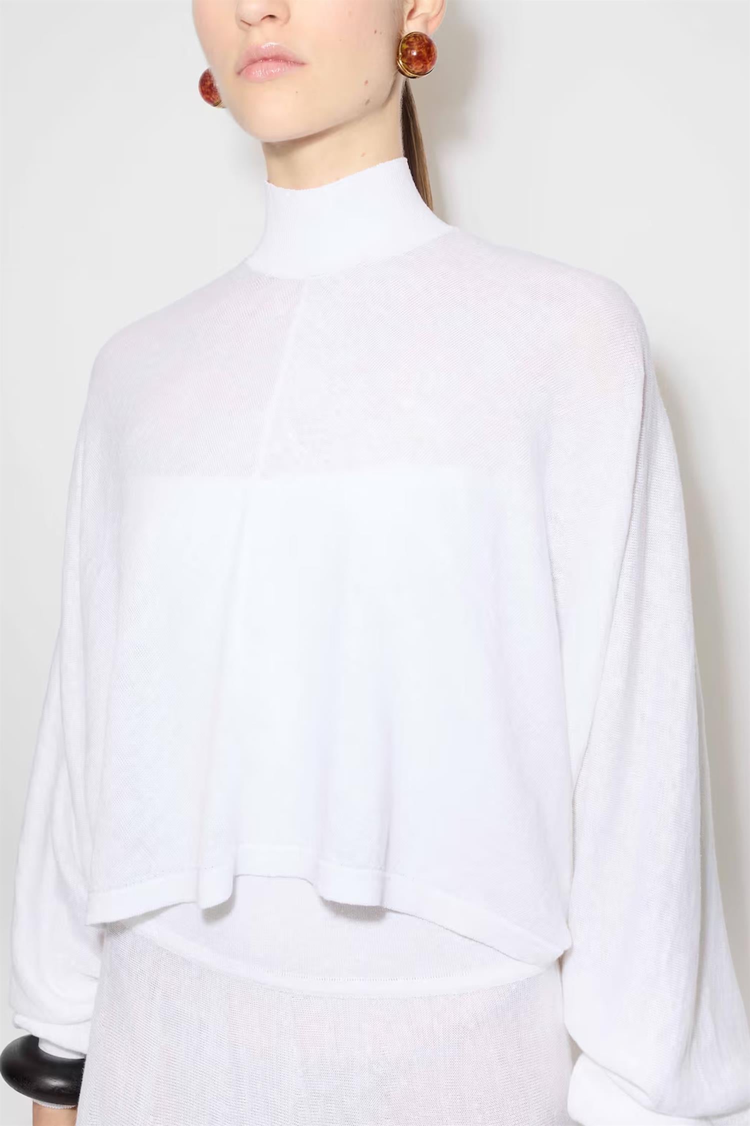 Bare back jumper fra Alaïa. En pen genser med en høy elegant hals, åpen rygg og lange ermer med pene detaljer.
