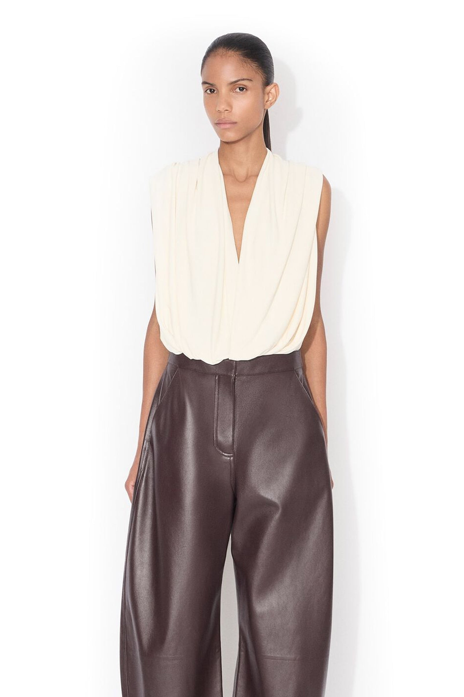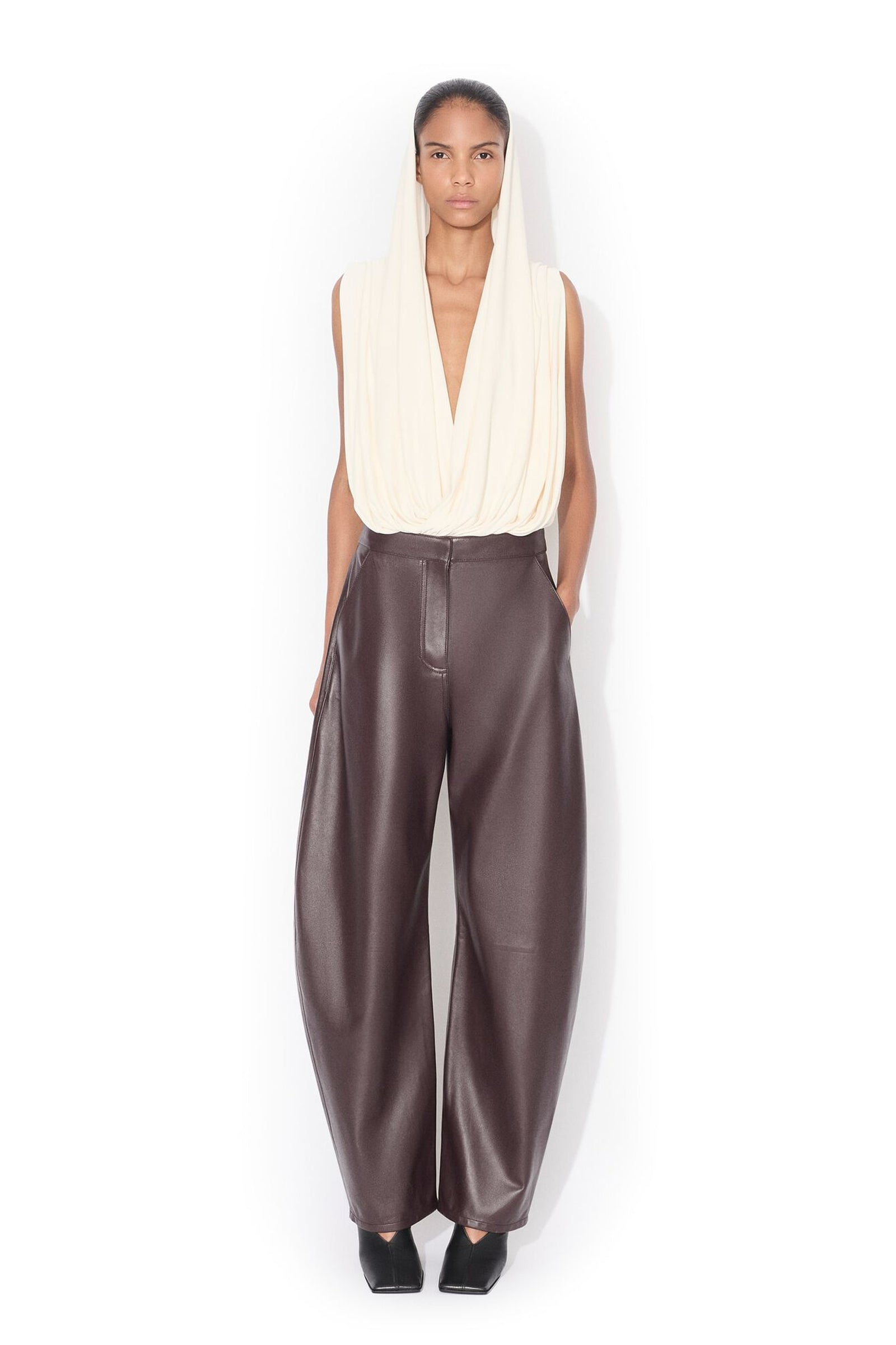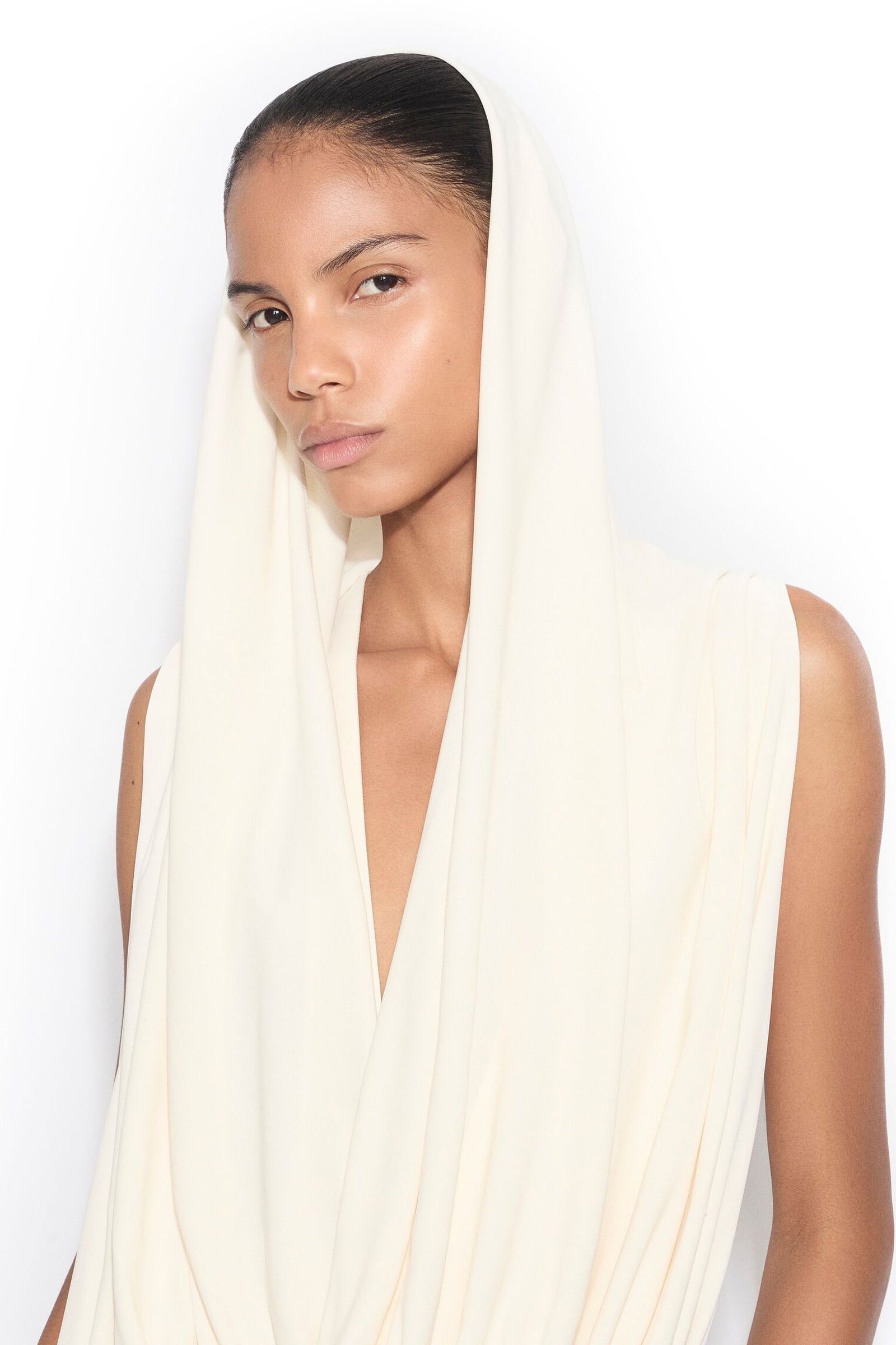 Hooded Body fra Alaïa fremstilt i en flytende viskose jersey. Designet med en integrert hette, V-hals og en markert livlinje som balanserer ut det flytende uttrykket.