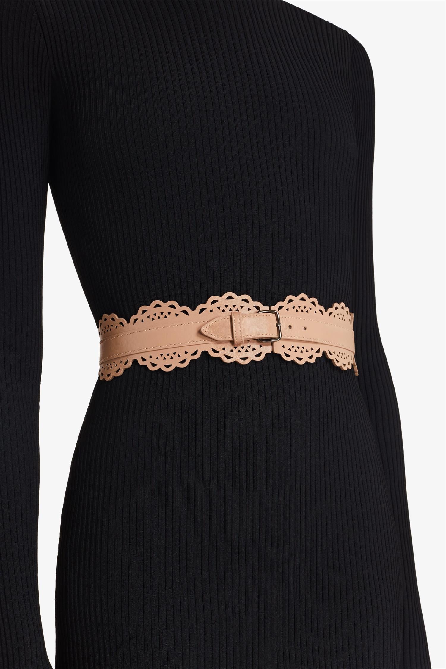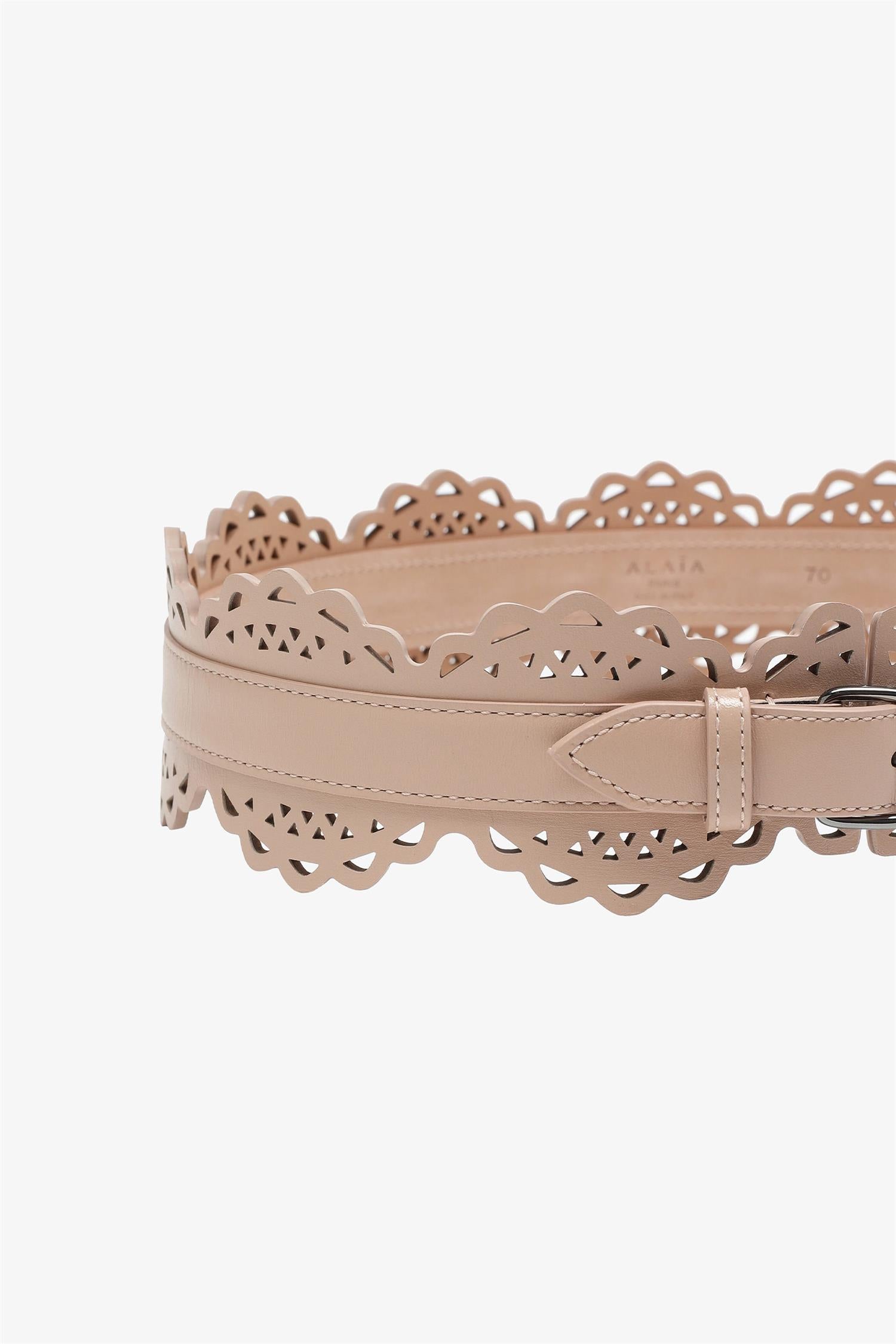 Midjebelte skåret ut med Alaïas ikoniske Vienne-mønster. Festes med buckle og justeres til å passe perfekt i midjen. Brukes til kjoler, skjørt, bukser eller utenpå blazer.