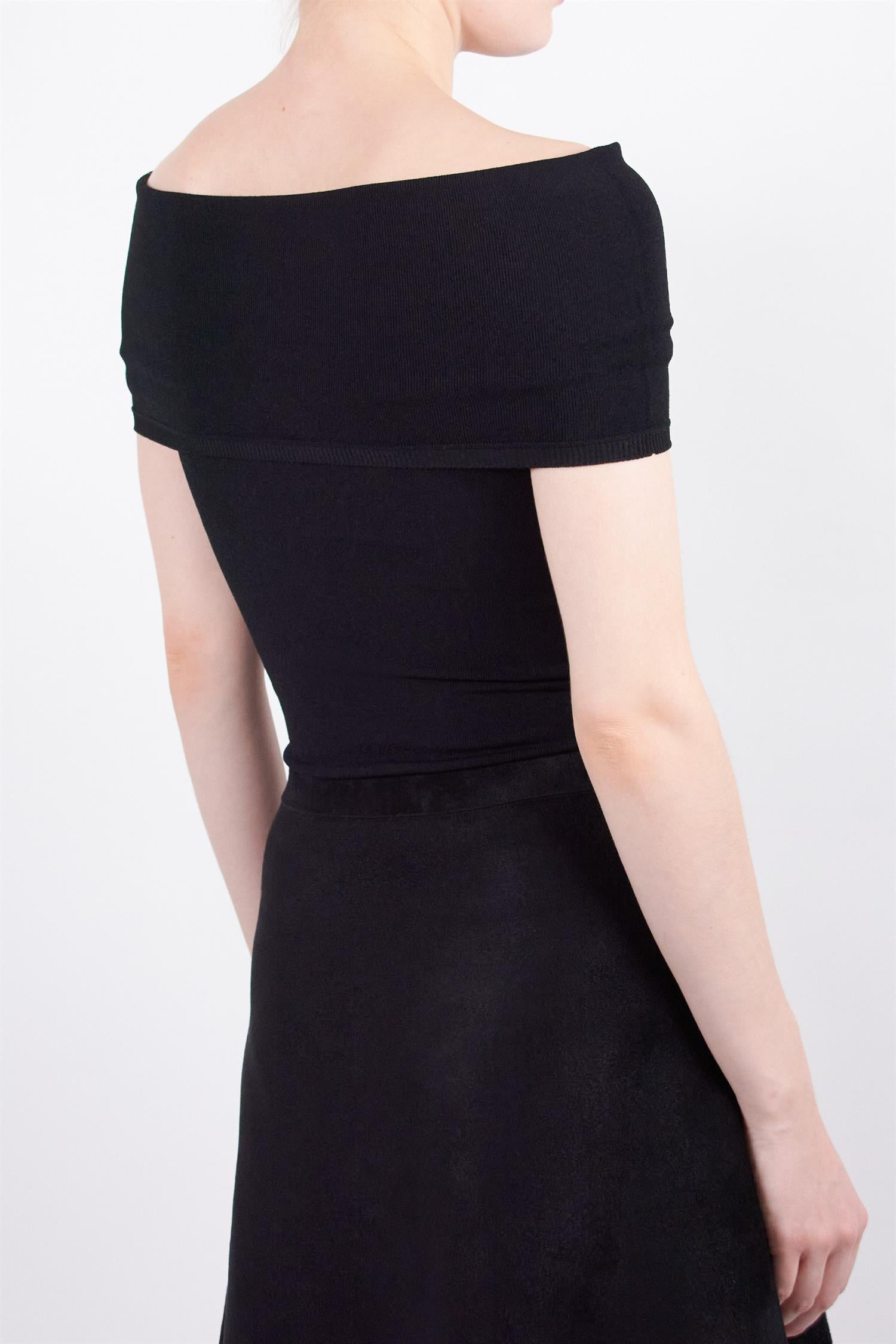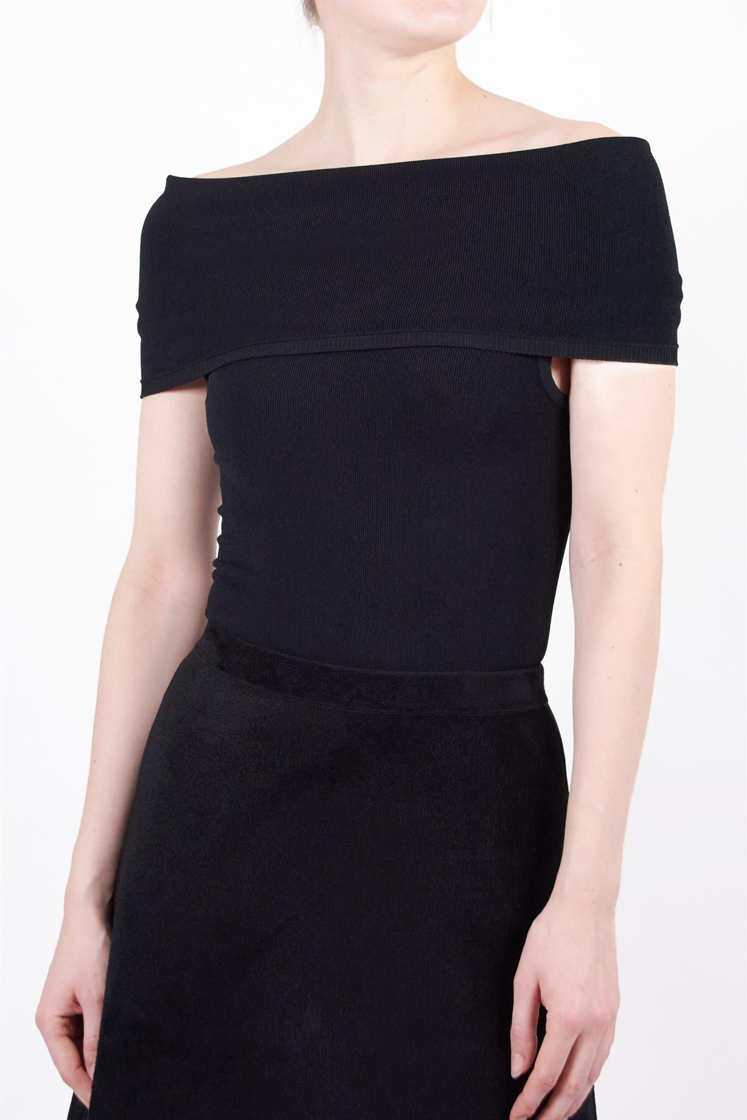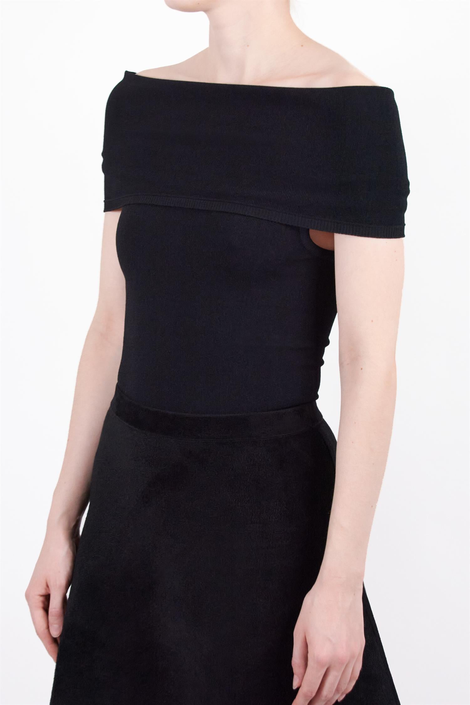 Tidløs og allsidig off-the-shoulder body. Stoffet brettes ned slik at du får akkurat den passformen du ønsker. Stoffet er av myk stretch-strikk som sitter pent inntil kroppen.