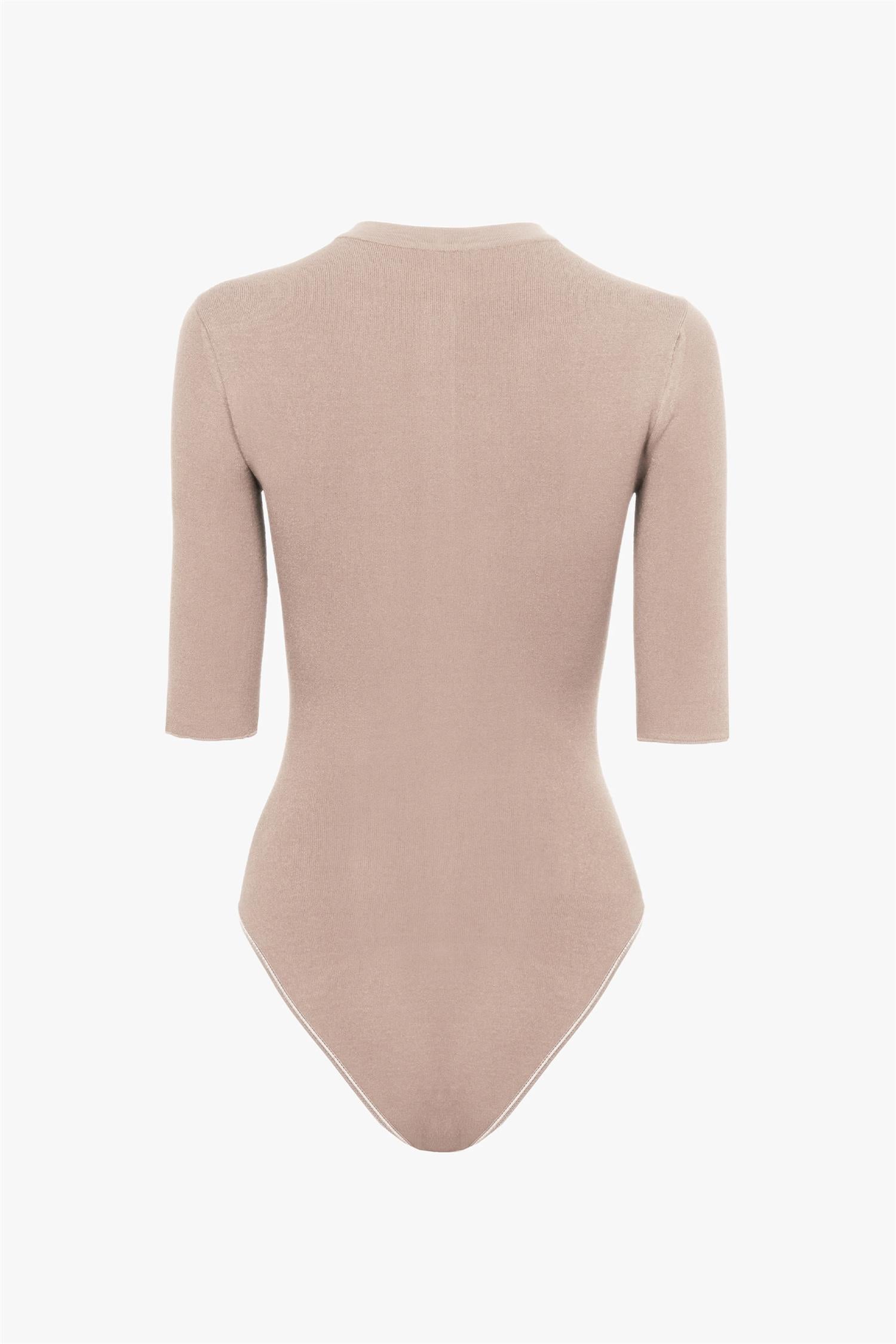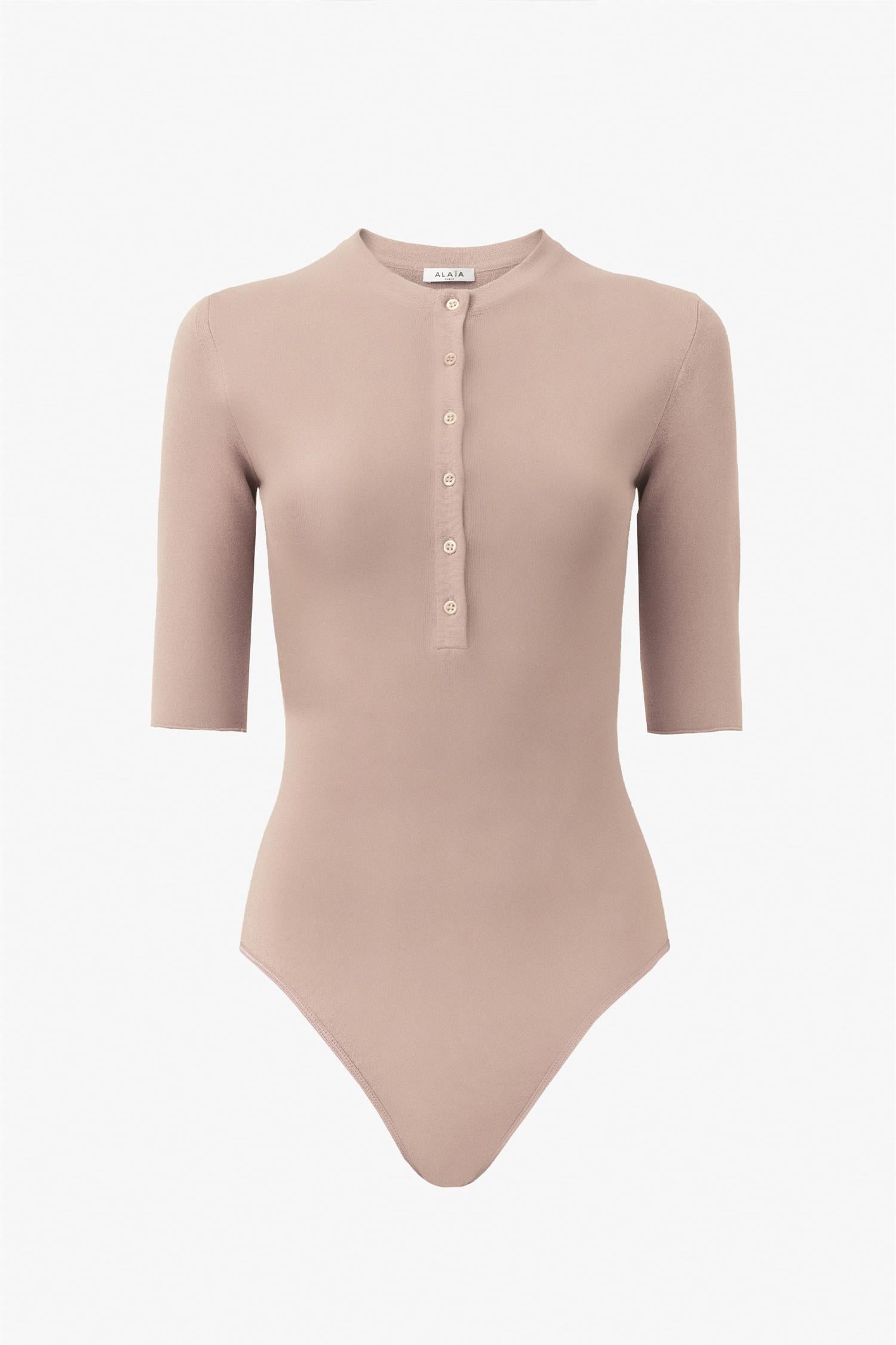 Body i matt viskose med rund hals, knepping og trekvart ermer.