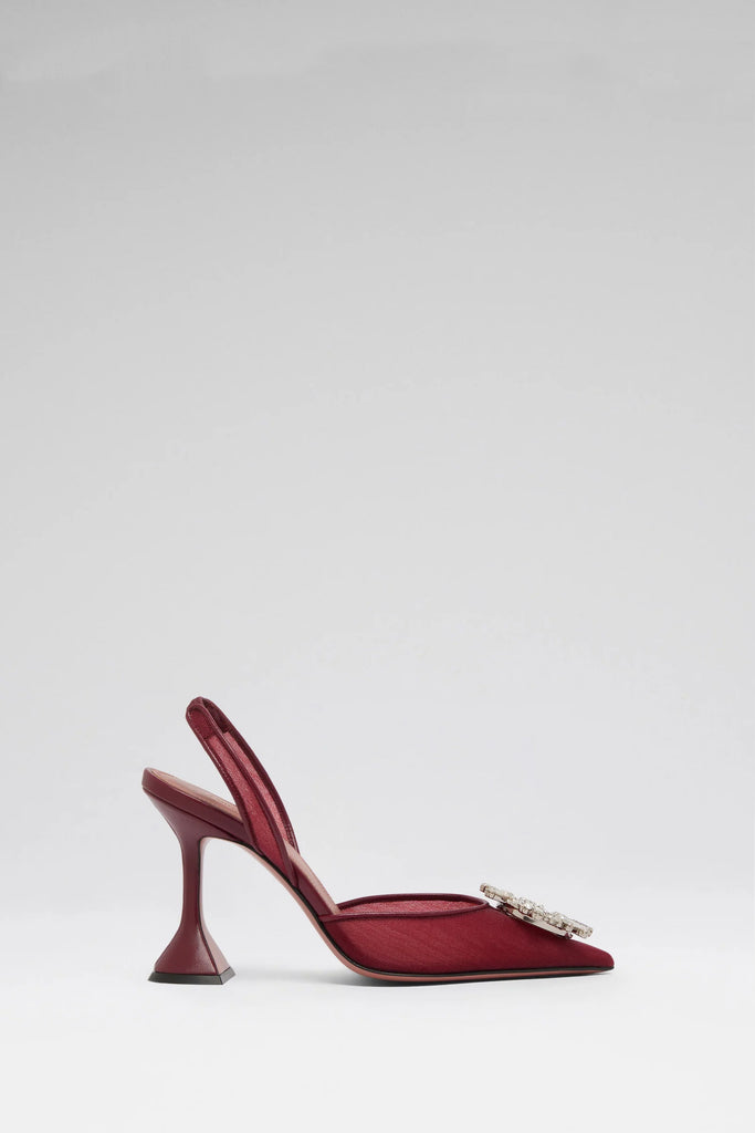 Amina Muaddi er designeren på alles lepper – og ønskelister. Selv er hun vokst opp mellom Jordan, Romania og Italia og har en allsidig bakgrunn fra motebransjen, som omfatter både design og magasin. Da Muaddi bestemte seg for å starte sitt eget merke, reiste hun til det kjente italienske sko-distriktet, Riviera del Brenta, hvor hun gikk i fotsporene til blant annet Manolo Blahnik og lærte alt om produksjon av sko. Muaddi har tidligere også samarbeidet med den franske couture mesteren, Alexandre Vauthier, og kvalitet og godt håndverk har vært grunnpilarer for Amina Muaddi fra hun grunnla merket under eget navn i 2018. I dag er Amina Muaddi basert i Paris, med all produksjon i Italia.