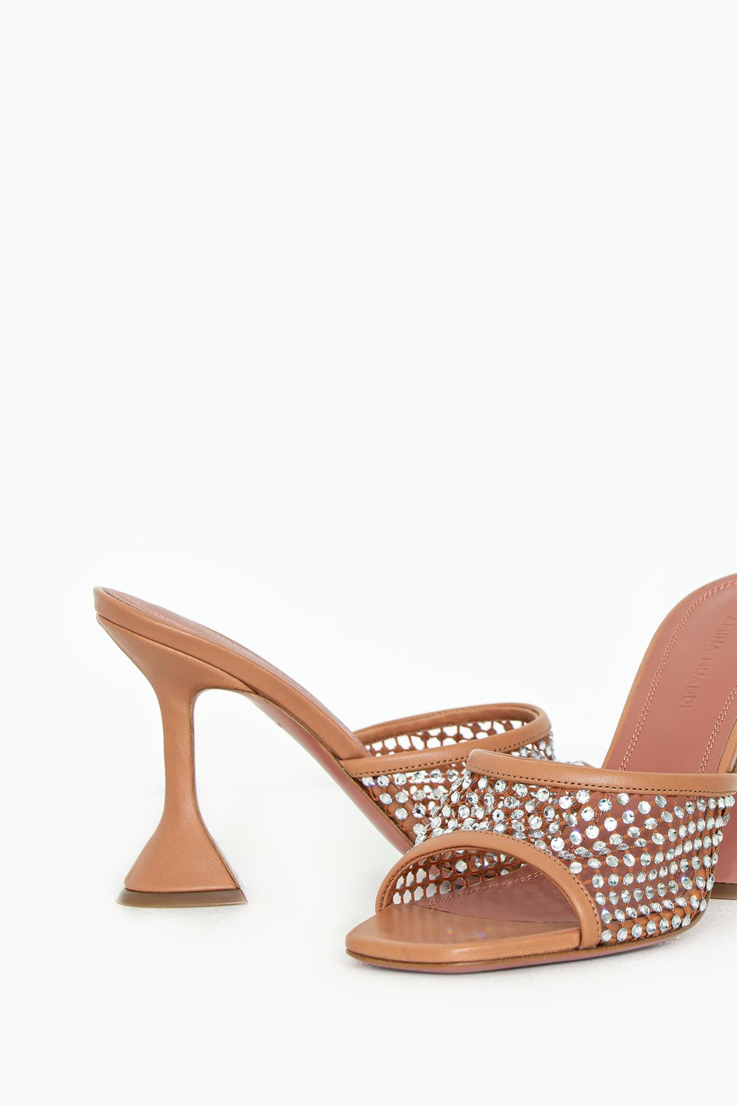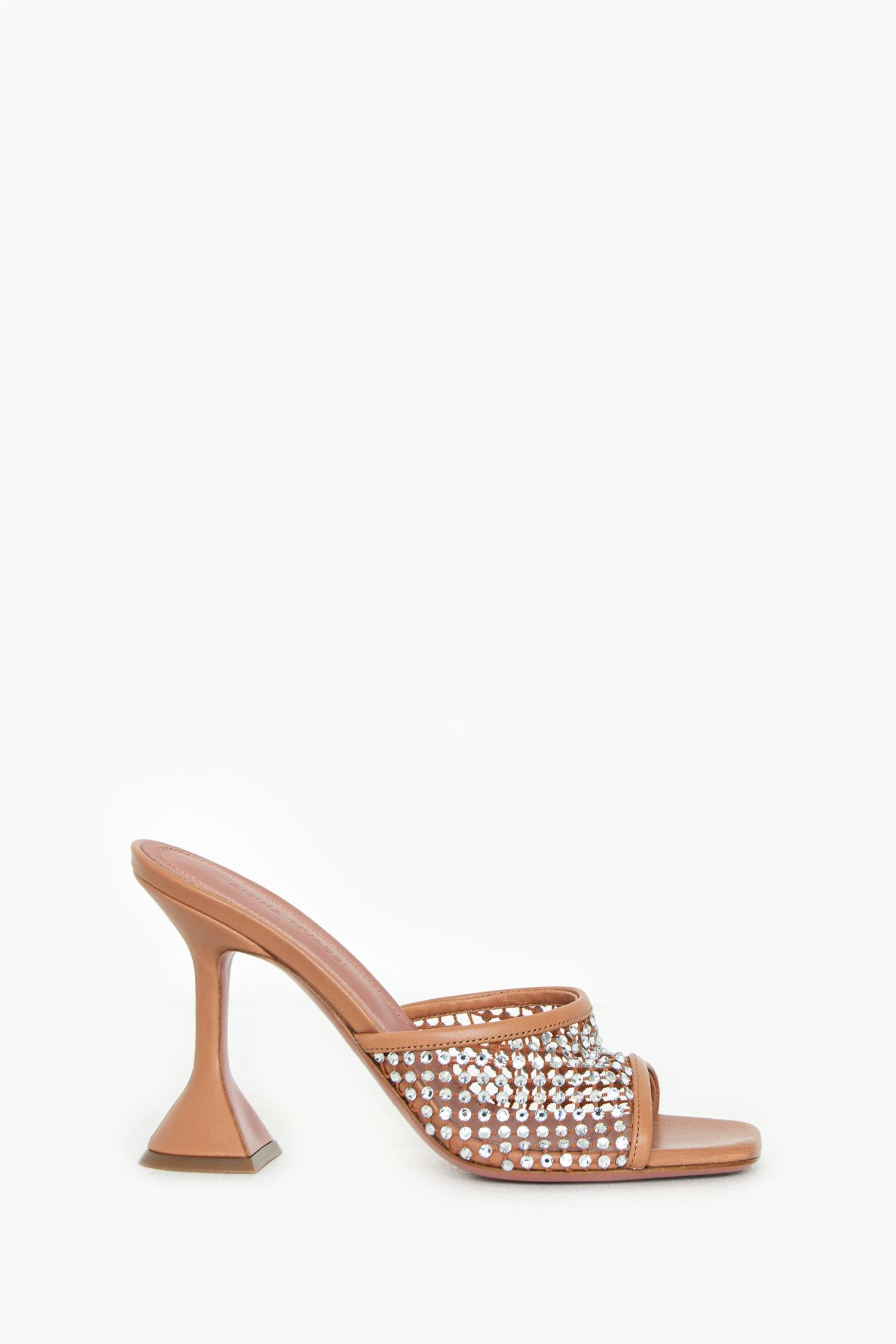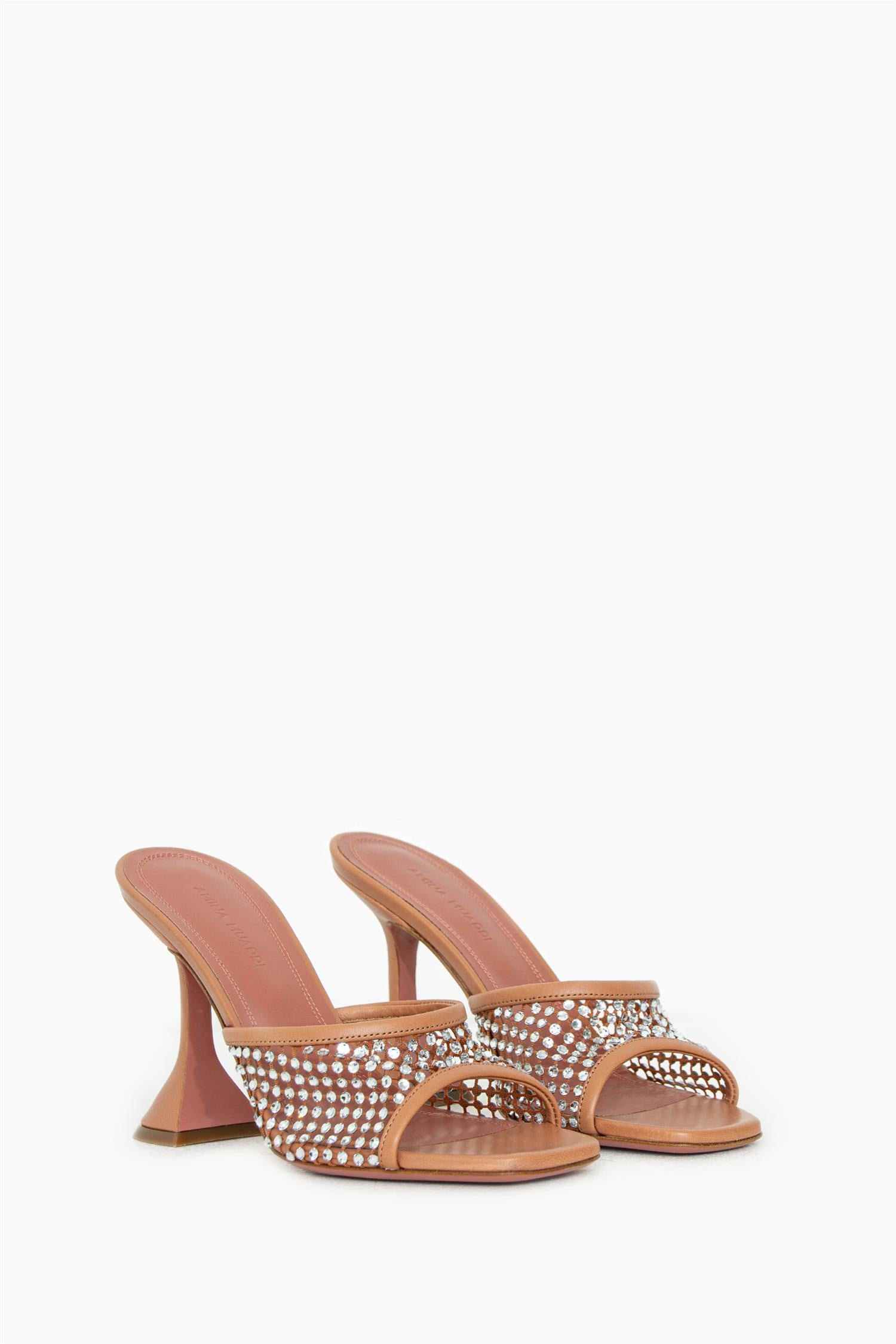 Amina Muaddi har raskt blitt en favoritt innen moteverdenen takket være sine iøynefallende og skulpturelle sko. Disse mule-sandalene er laget med et firkantet åpent tådesign, skinntrimmede, krystallbesatte overdeler som skaper en imponerende effekt og en såle med lærinnersåle og gummiyttersåle for økt komfort og holdbarhet.