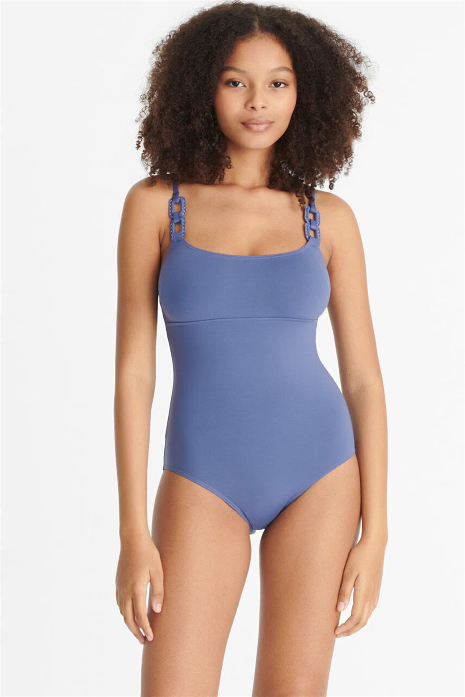 Côtier-badedrakten fra Eres kombinerer støtte og stil på en elegant måte. Med en underbryst-søm som gir optimal støtte og justerbare stropper dekorert med spenner og kontrastsømmer, er denne badedrakten både funksjonell og sofistikert.