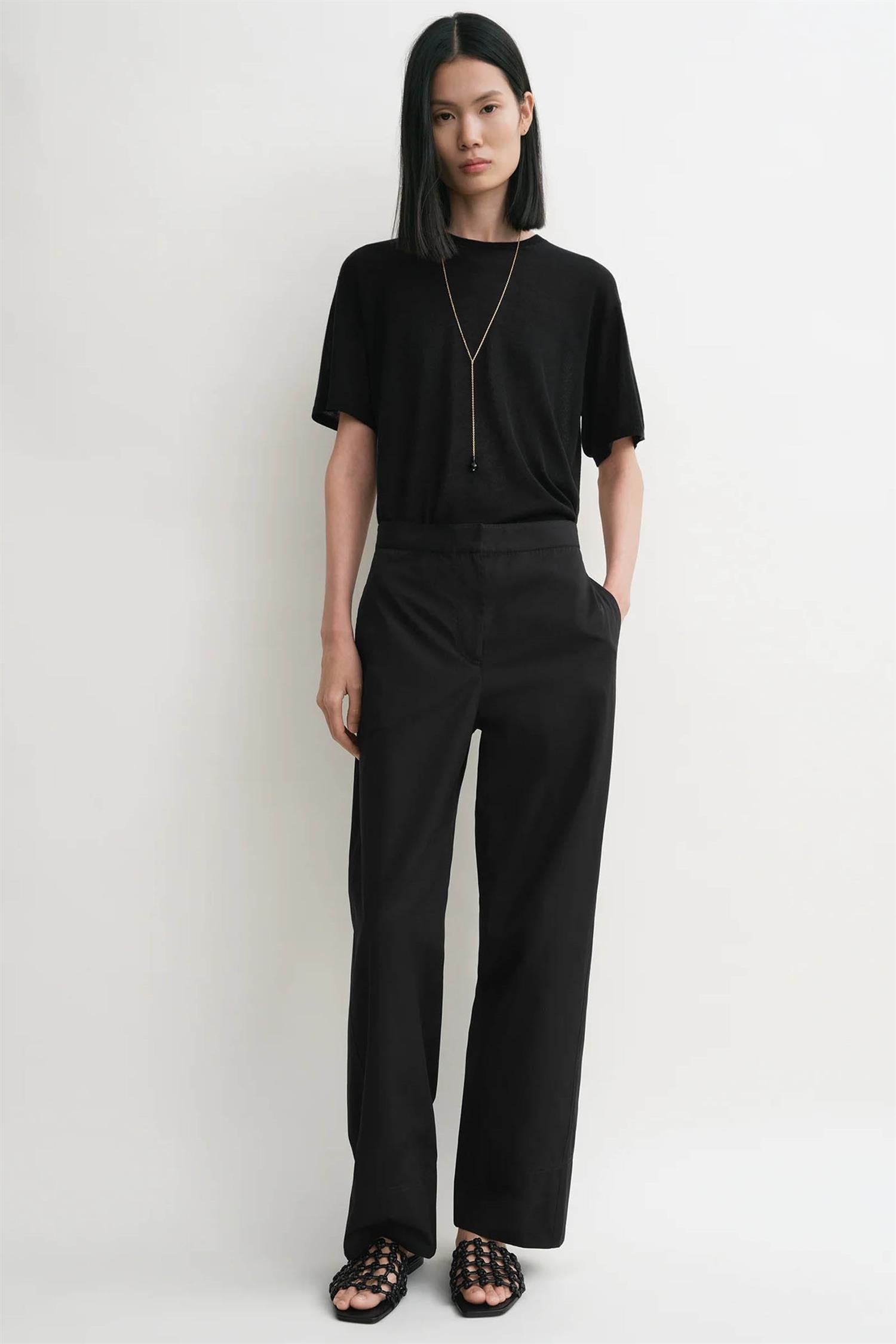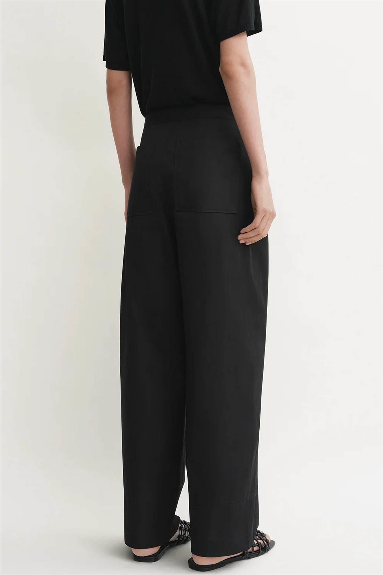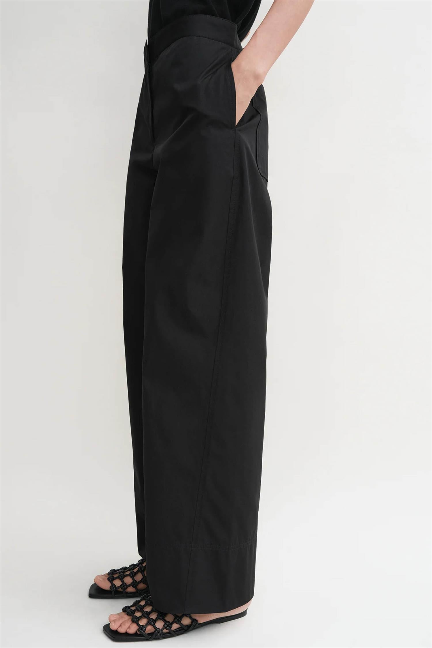 Fremvist på Summer 25-catwalken, bygger disse sommerbuksene fra TOTEME videre på vårt emblematiske vridde sidesøm-design. De er laget av lett, luftig økologisk bomullspoplin og har en vid, rett passform. Buksene har glidelås og knapp foran, samt praktiske stikklommer og baklommer. Fullfør et monokromt uttrykk med en tonet topp.