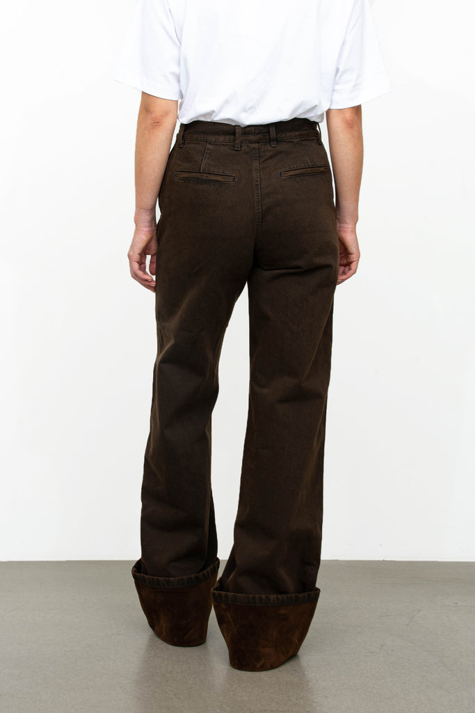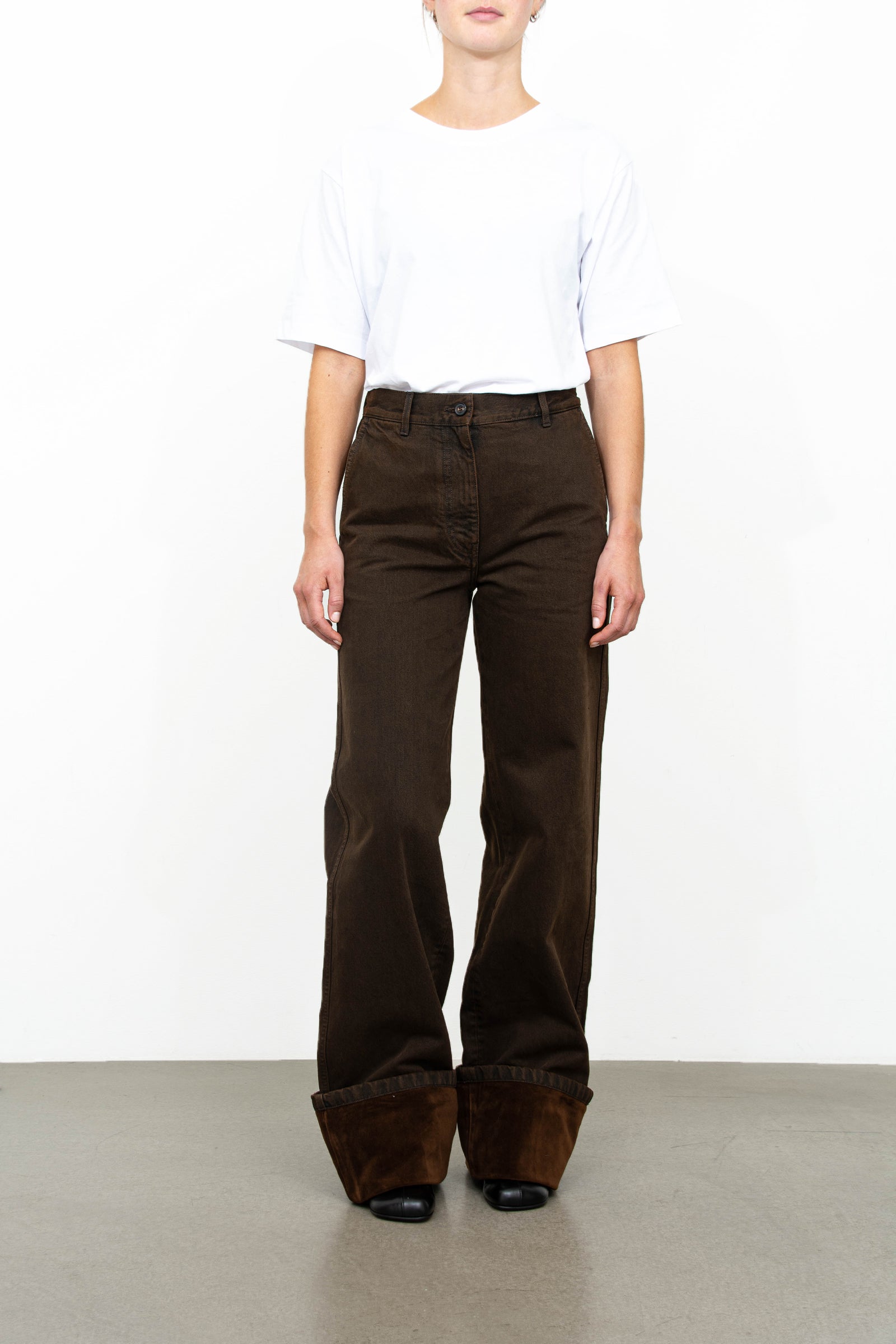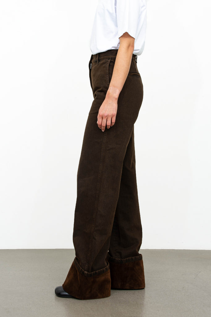 Denim pants fra Dries Van Noten. Buksene er høye på livet med en brett detalj nederst og er vide i modellen som gir et raffinert uttrykk.