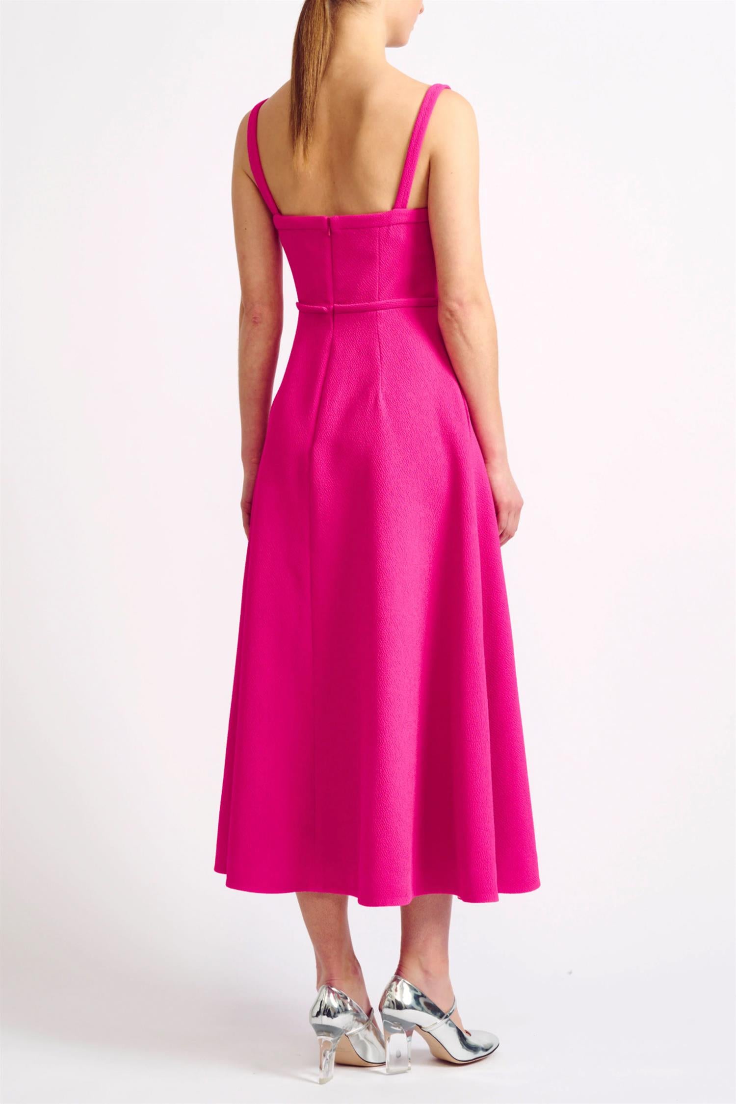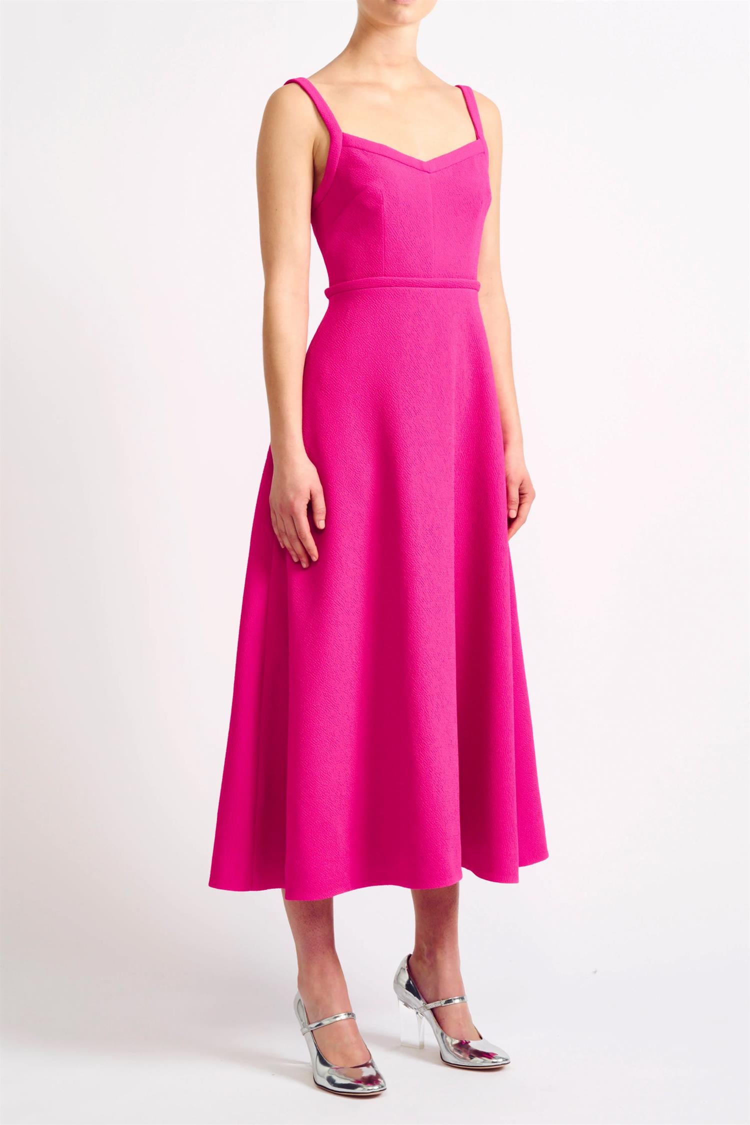 Grasiøse proposjoner definerer designet til Emilia Wickstead og Elvita Dress sklir rett inn i dette ensemblet. Kjolen har en lett v-hals, smal midje og et a-linjeformet skjørt.