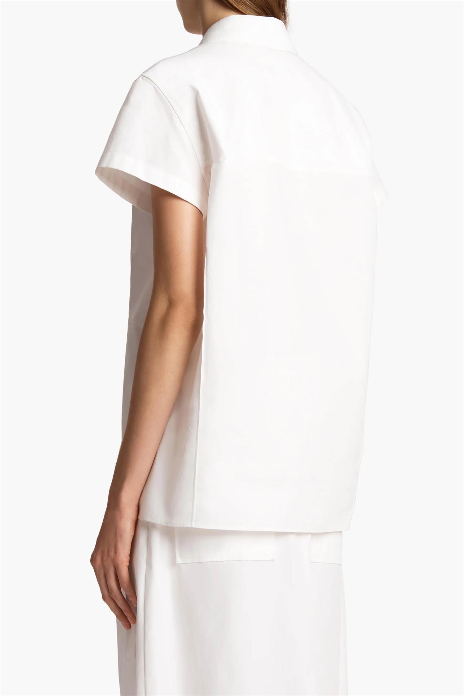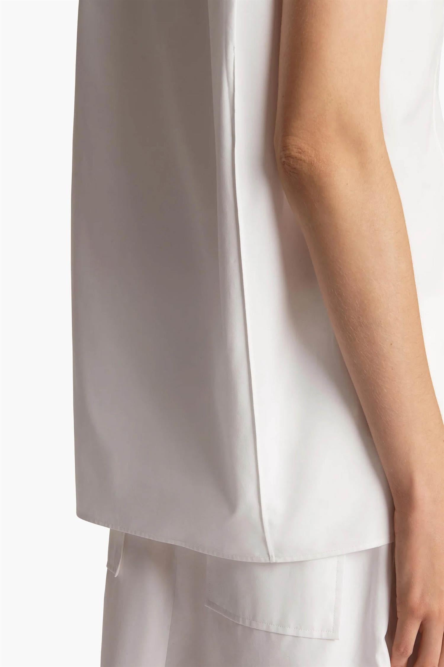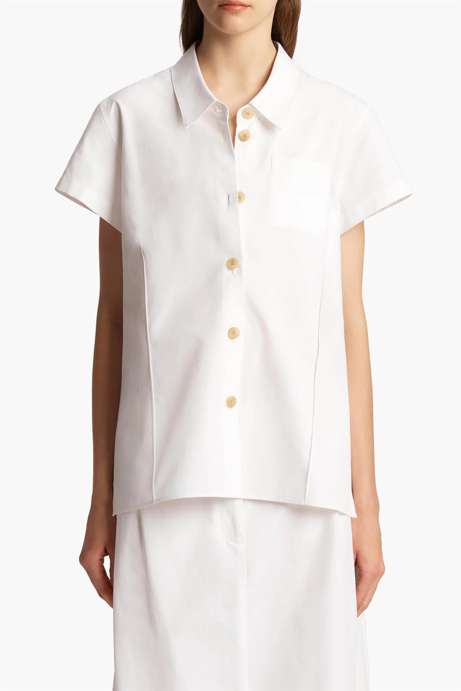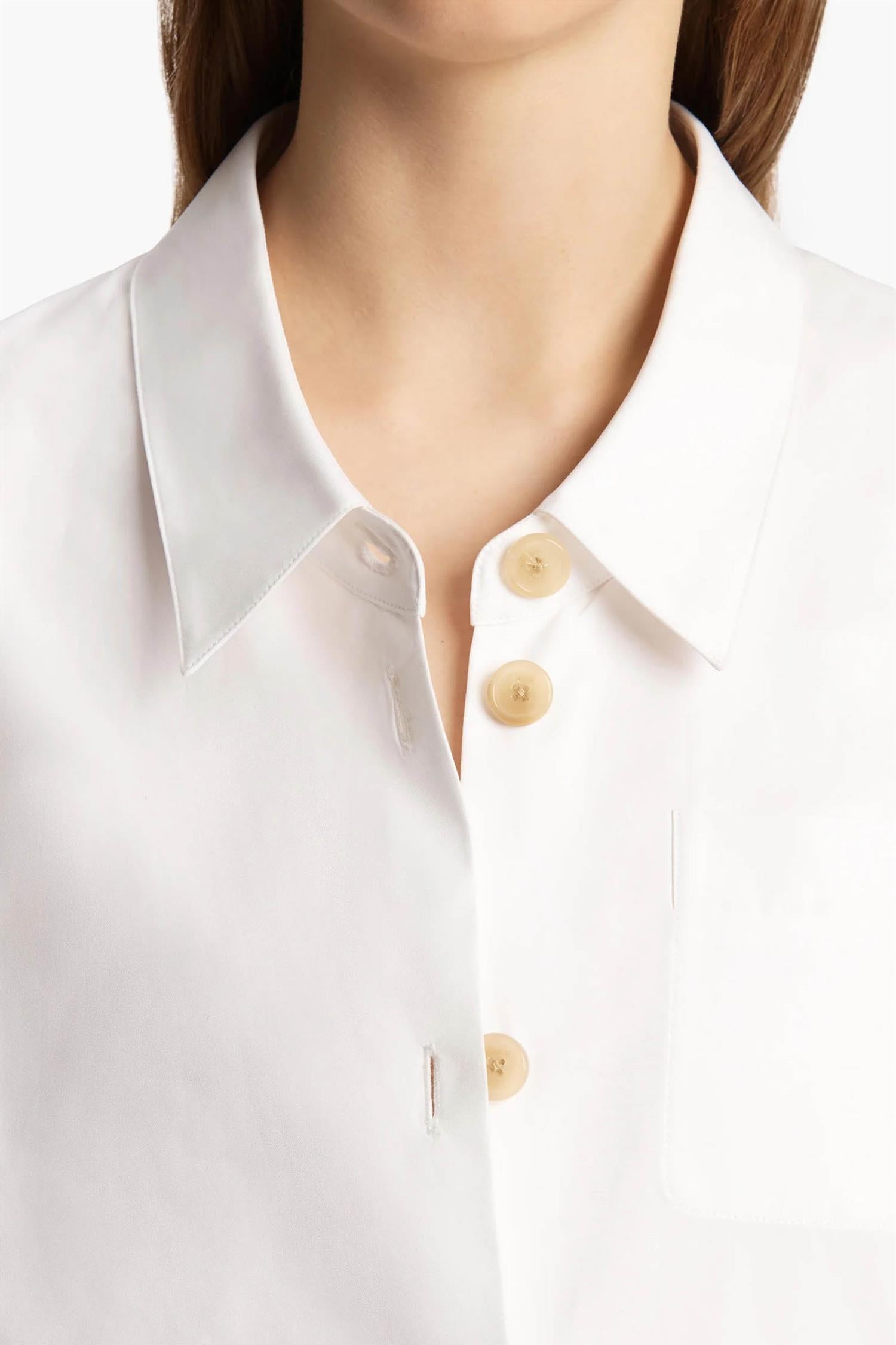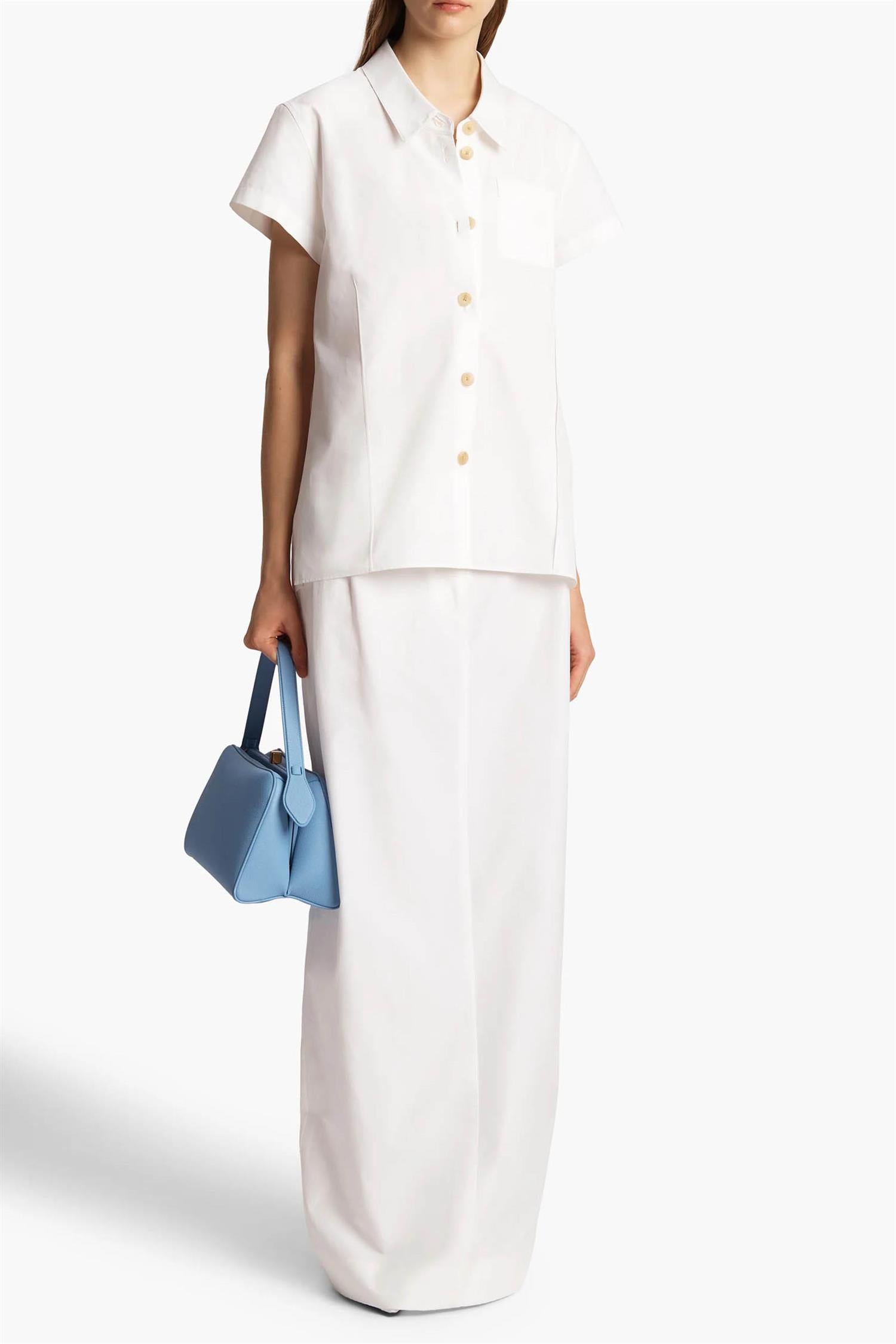 Kortermet skjorte frs Khaite i sprø bomullspoplin, med fine legg foran og bak som tilfører struktur og eleganse. Skjorten har bærestykke bak, innfelt brystlomme og lett buet kant nederst.