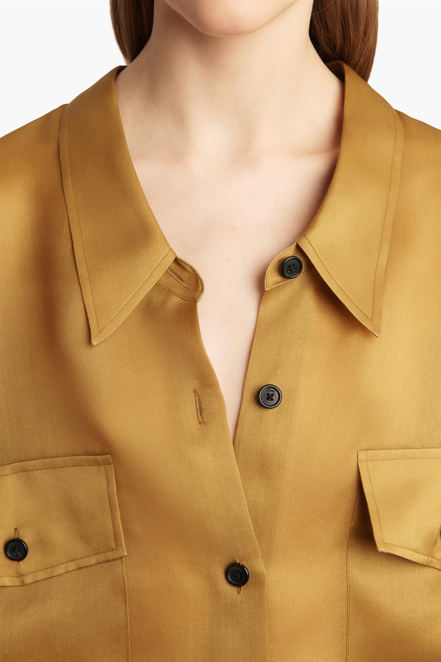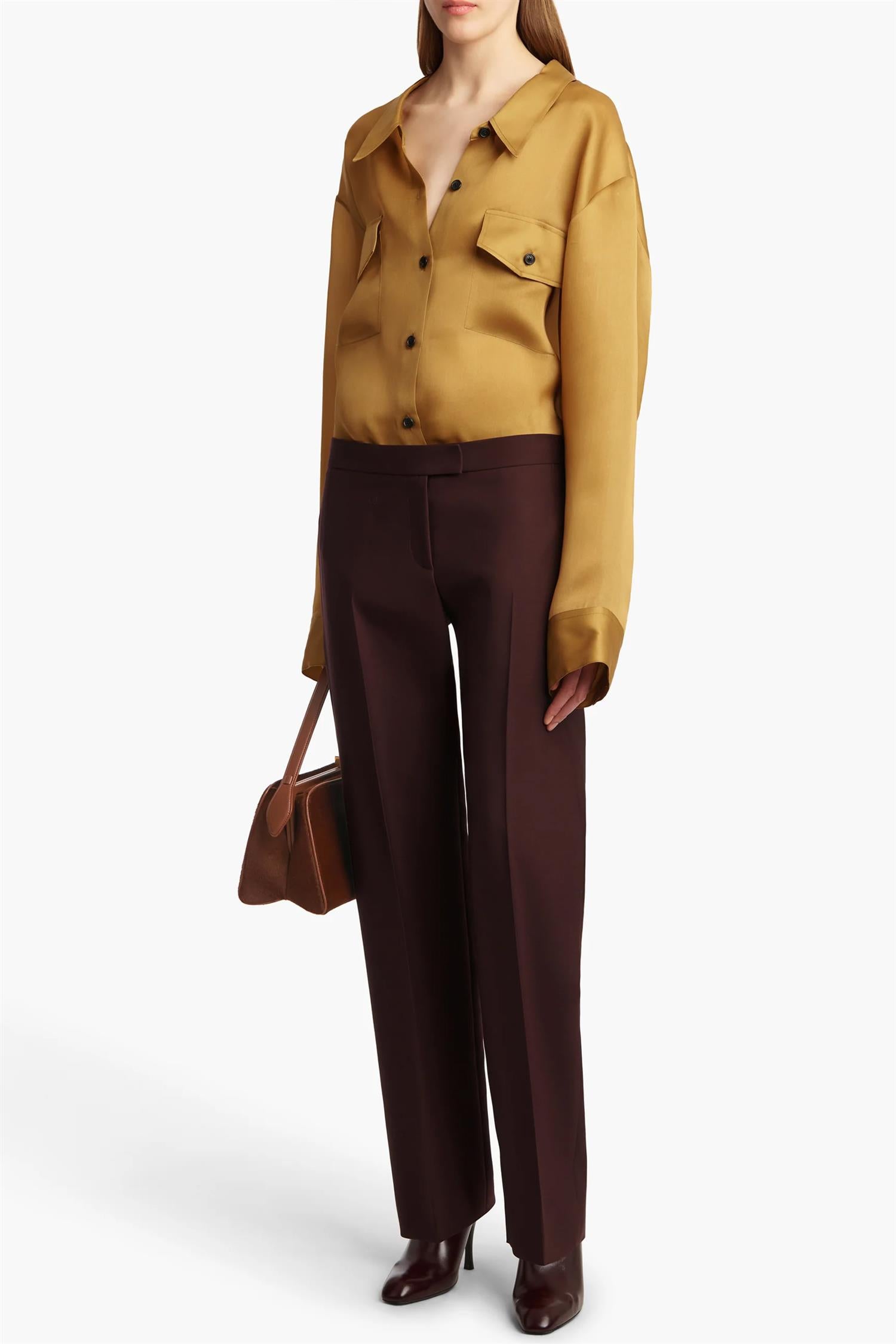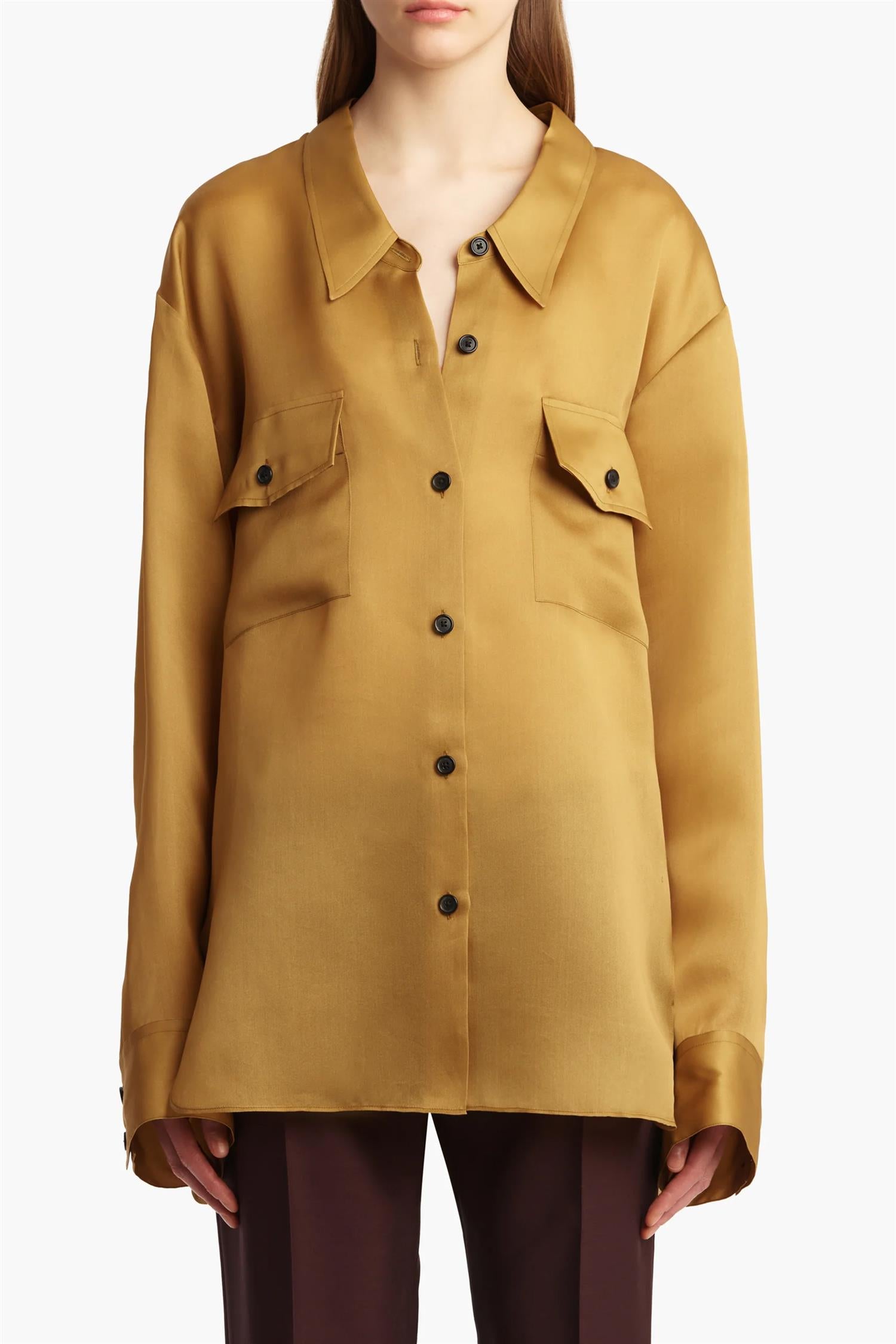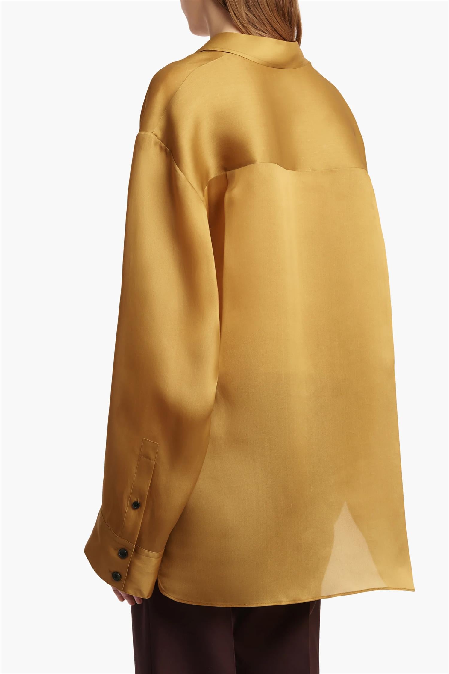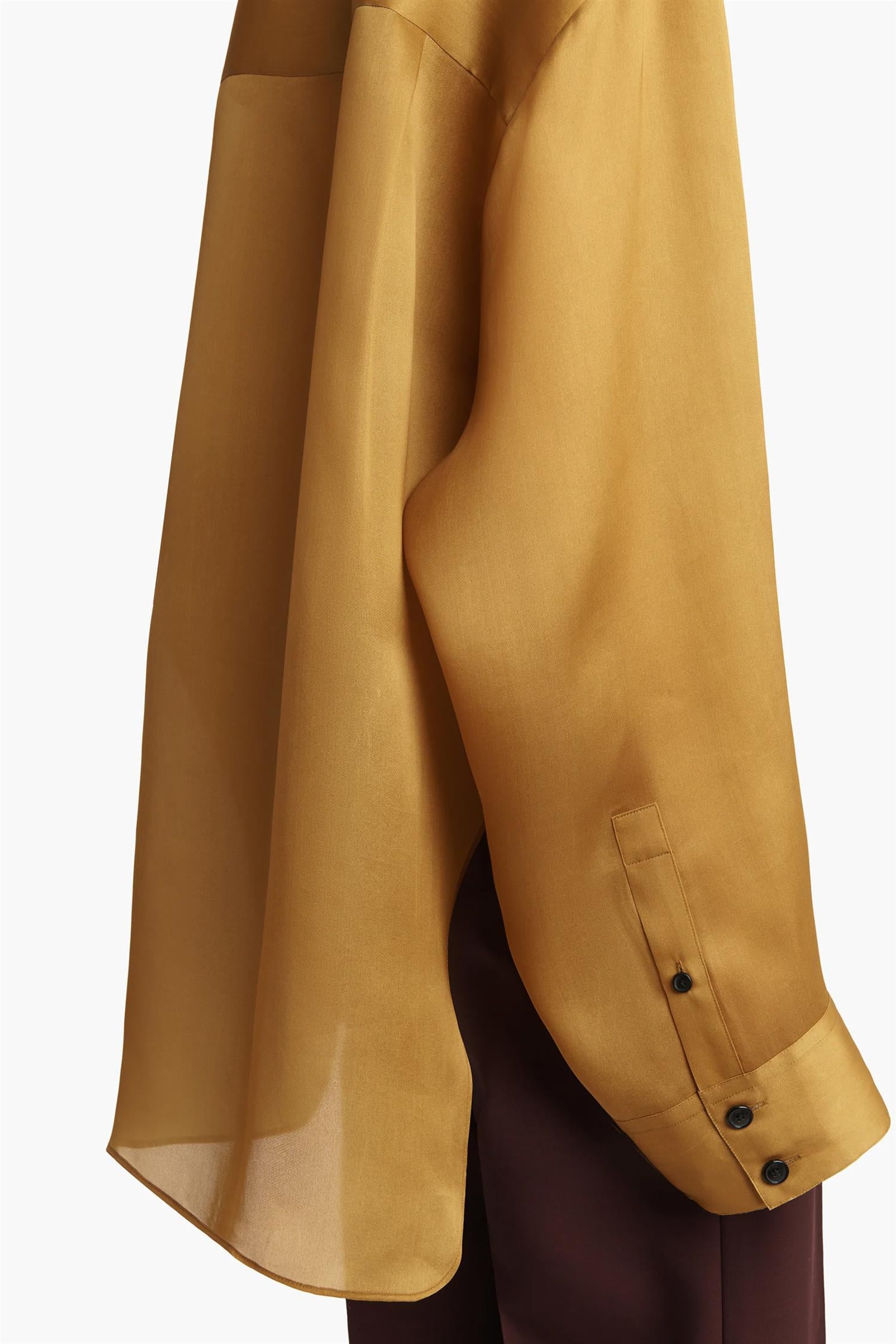 En lett og elegant button-up skjortebluse fra Khaite i kompakt organza med senkede skuldre, hornknapper og lange ermer.