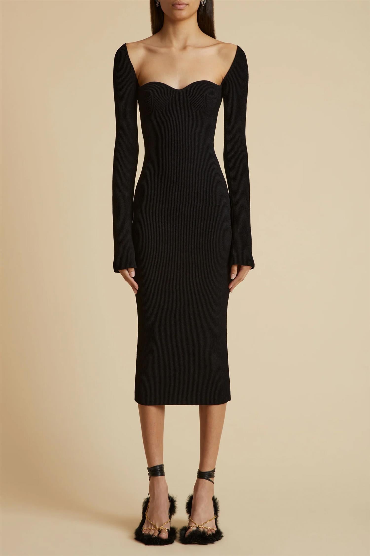 Denne elegante, ribbestrikkede kjolen er designet for å sitte tett og følger kroppens naturlige former. De lange ermene definerer den flatterende utringningen. Kan styles med alt fra sneakers og sandaler til høye pumps.