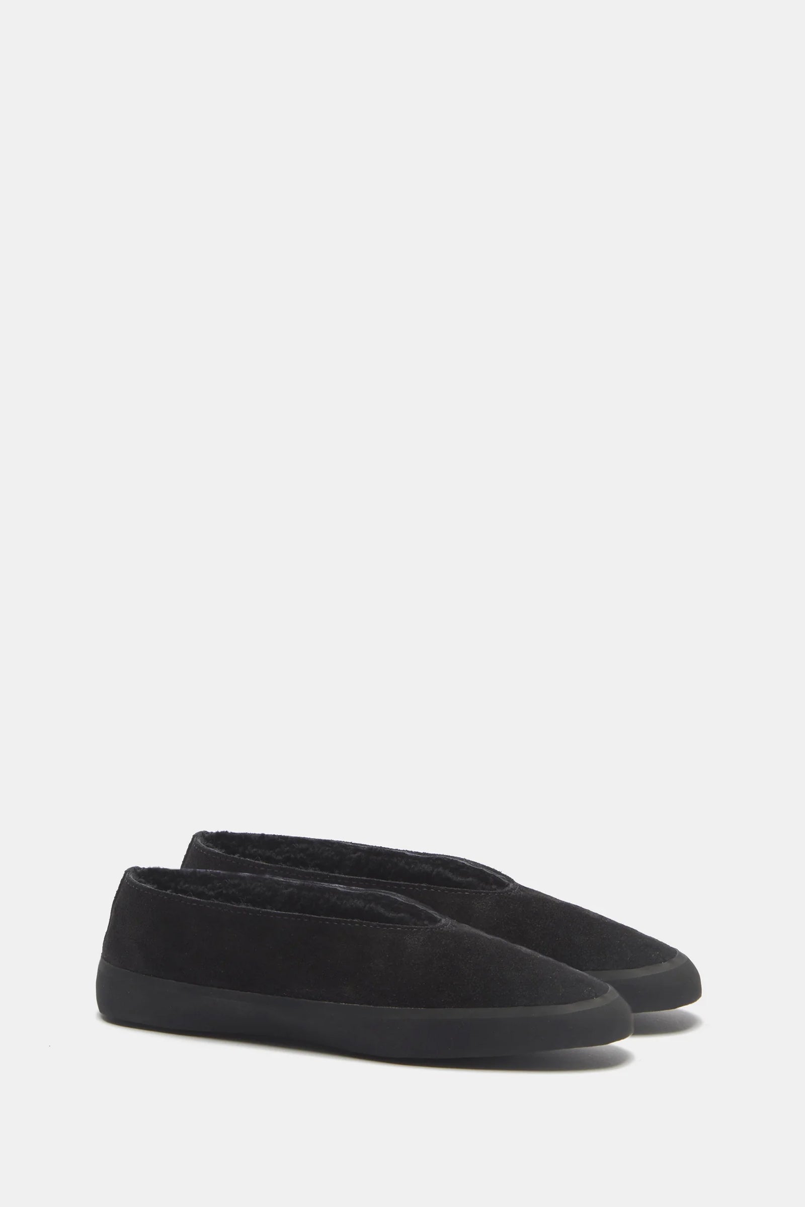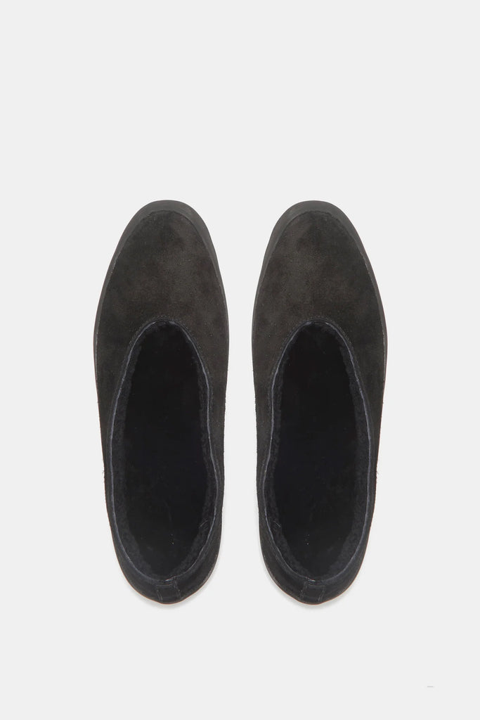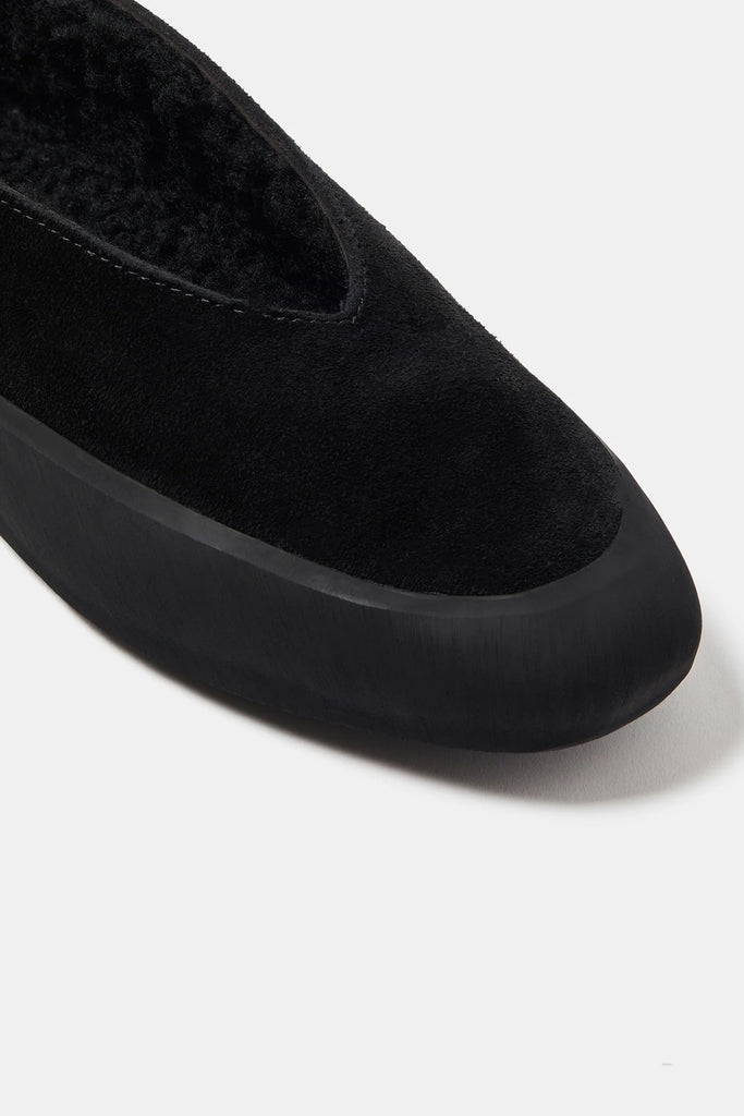 Après Ski Shearling Flats fra Le Monde Béryl er laget i mykt sort semsket skinn og fôret med ton-i-ton shearling som gir varme og komfort. Den polstrede innersålen og den glatte gummisålen gir godt grep og en behagelig passform.