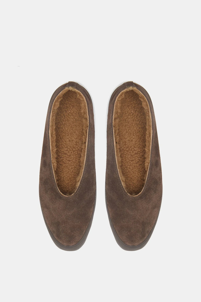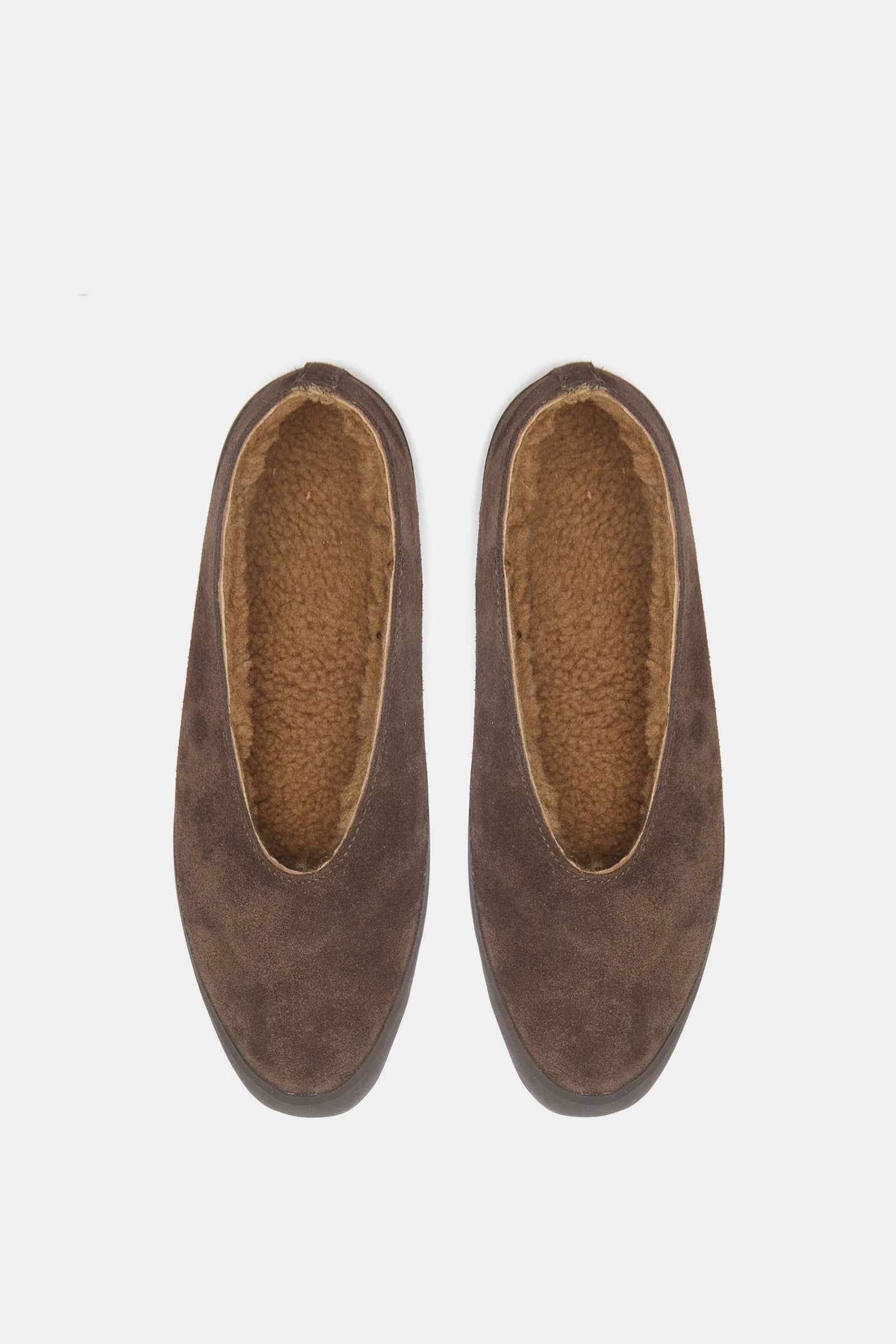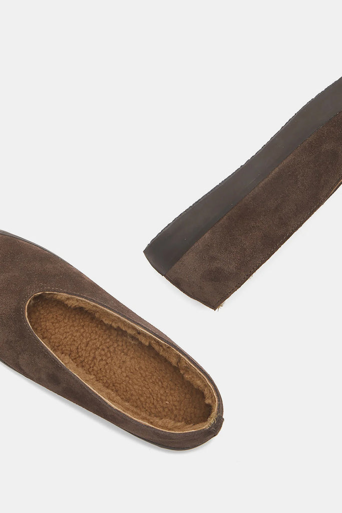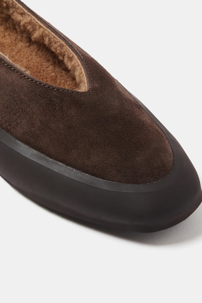 Après Ski Shearling Flats fra Le Monde Béryl er laget i mykt sort semsket skinn og fôret med ton-i-ton shearling som gir varme og komfort. Den polstrede innersålen og den glatte gummisålen gir godt grep og en behagelig passform.