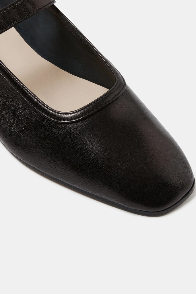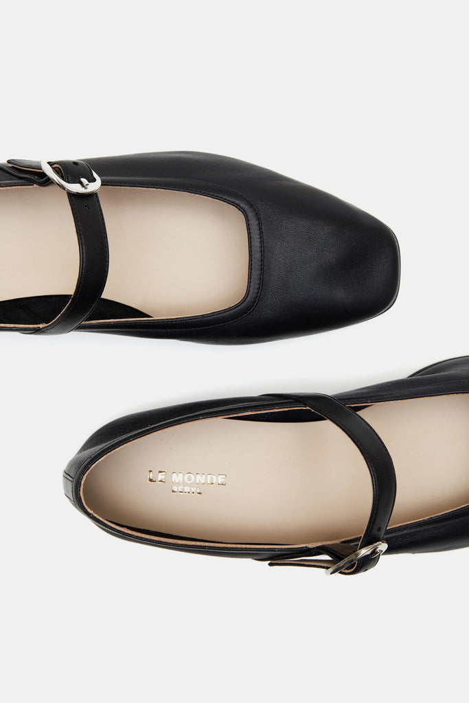 Ballet Mary Jane fra Le Monde Beryl er fremstilt i mykt, dekonstruert lammeskinn som følger fotens naturlige form. Den lave 10 mm hælen gir en elegant silhuett og komfort hele dagen. Modellen er detaljert med en justerbar spenne, polstret innersåle i kalveskinn og delikate skinndetaljer langs kantene.