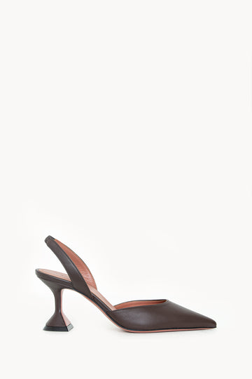 Holli Slingback fra Amina Muaddi i brunt nappa skinn. Modellen har et klassisk design og kan brukes til både fest- og hverdagsantrekket. Designet med Amina Muaddi sin signatur martiniglass-hæl i 70mm som gir god komfort og stabilitet.
