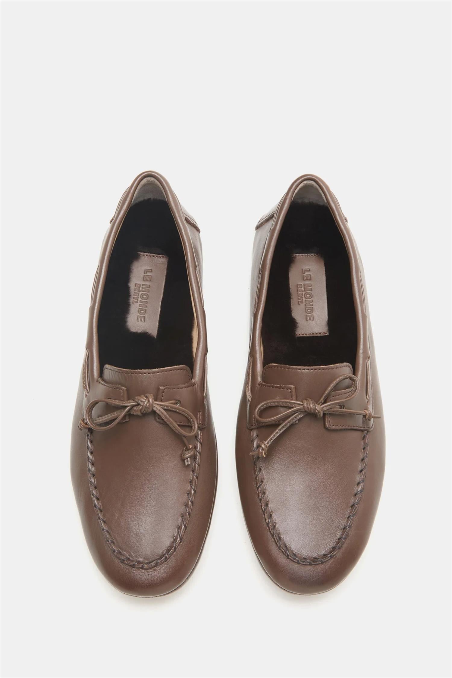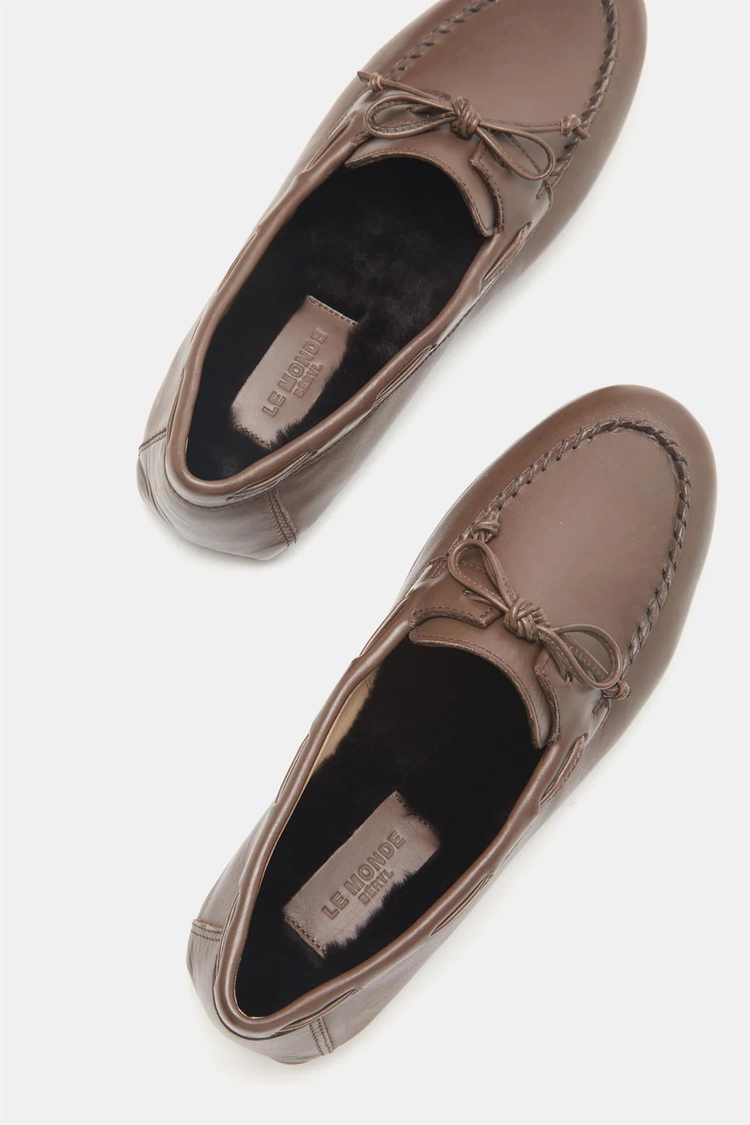 Driver Moccasin i Sigaro fra Le Monde Beryl er en sofistikert versjon av den klassiske bilskoen, håndlaget i Italia av mykt skinn. Skoen har et ton-i-ton fôr i shearling som gir en lun og komfortabel følelse, samtidig som den puster godt. Den fleksible gummisålen med karakteristiske knotter gir godt grep og gjør skoen like egnet til hverdagsbruk som til reise.