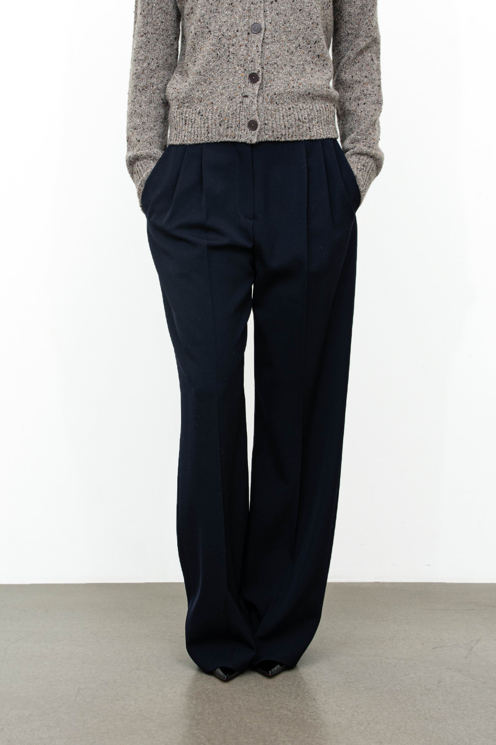 Virgil Pant fra The Row er en elegant og moderne bukse, designet med rette ben, doble legg foran og sidelommer. En skreddersydd bukse med høyt liv i strukturert ullgabardin. Style den med en klassisk skjorte, belte og loafers for en stilig hverdagslook.