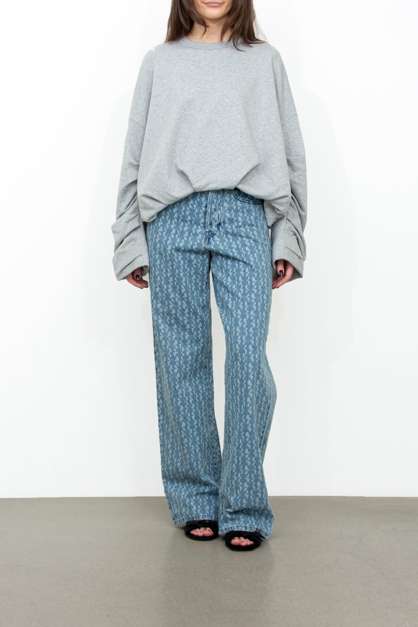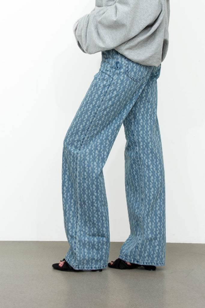 Lasered motiv denim jeans fra Dries Van Noten. Denim jeans med laserkuttet motiv og klassisk 5-lommers design. Modellen har en bred, rett silhuett og er den perfekte jeans til å løfte hverdagsantrekket.