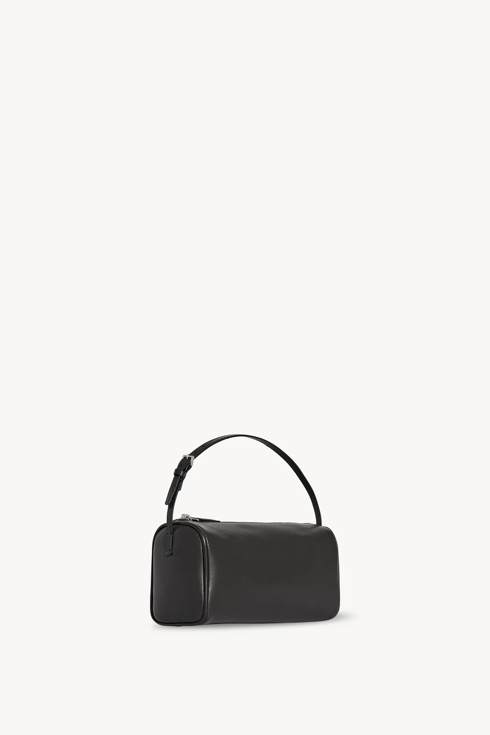 Elegant veske fra The Row med topphåndtak i glatt nappaskinn, designet med mykt avrundede kanter, dekorativ skinnpiping og en justerbar, smal skulderstropp. Et sofistikert tilbehør som kombinerer tidløs design med funksjonalitet.