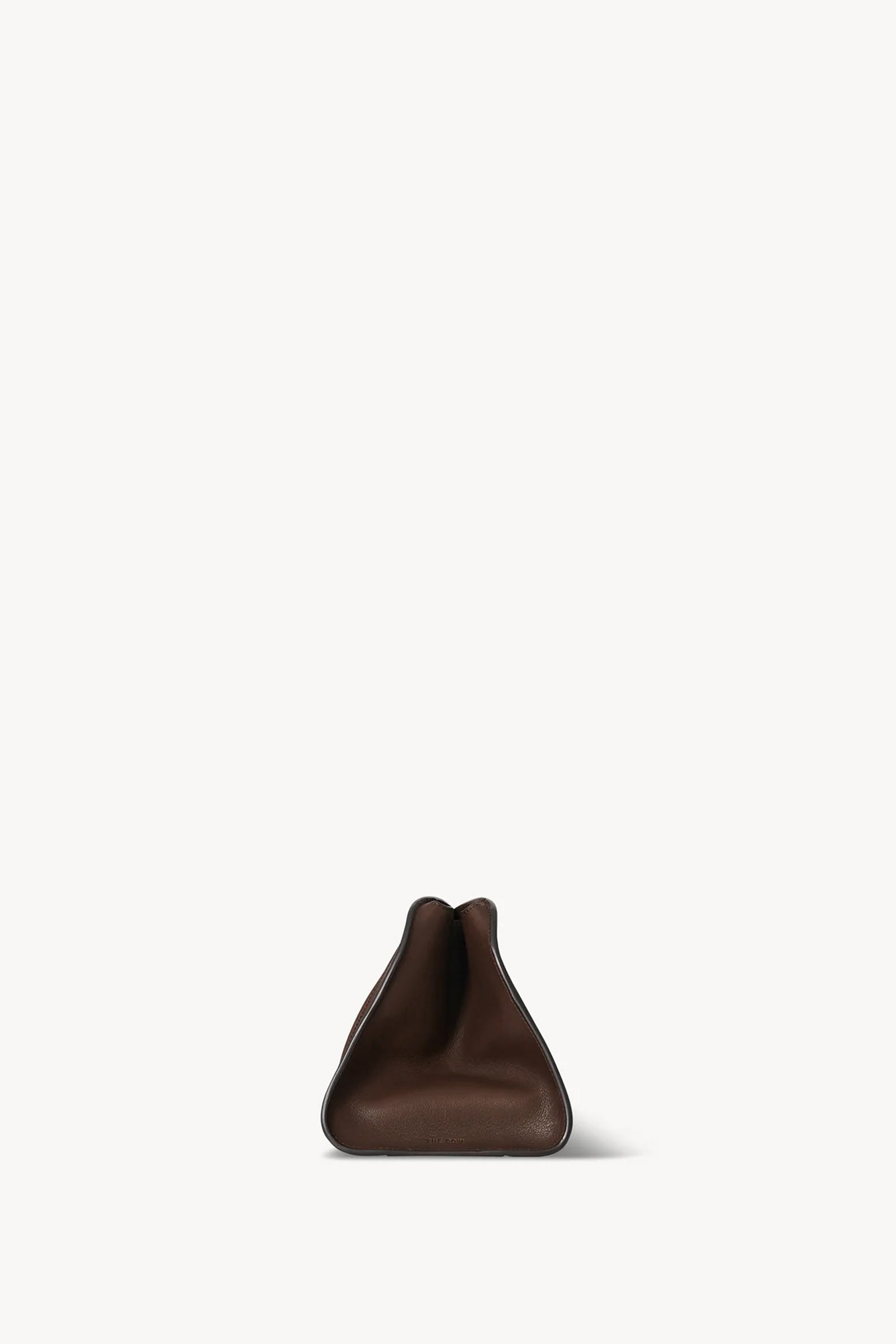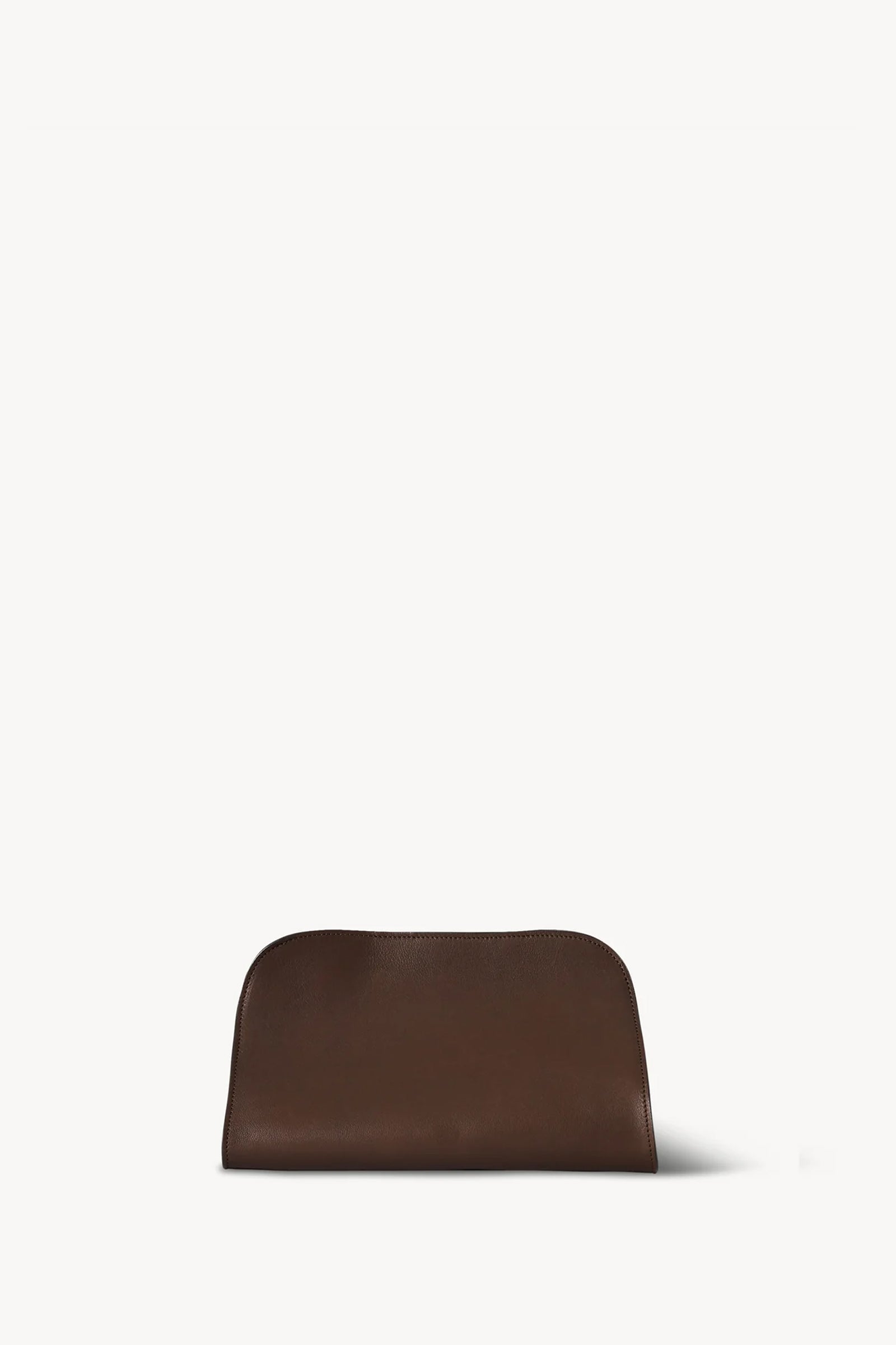 Mykt strukturert clutch fra The Row i polert sal-lær, designet med én skulderstropp og kiler i sidene som gir både form og funksjonalitet. Vesken er laget av ubehandlet og tromlefarget skinn, som med tiden utvikler en vakker patina og et unikt uttrykk gjennom bruk.