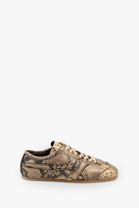 Joggesko fra Dries Van Noten i kalveskinn med slangeskinnsmønster, inspirert av 70-tallets maratonestetikk. Designet har en tynn signatursåle og klassisk snøring.