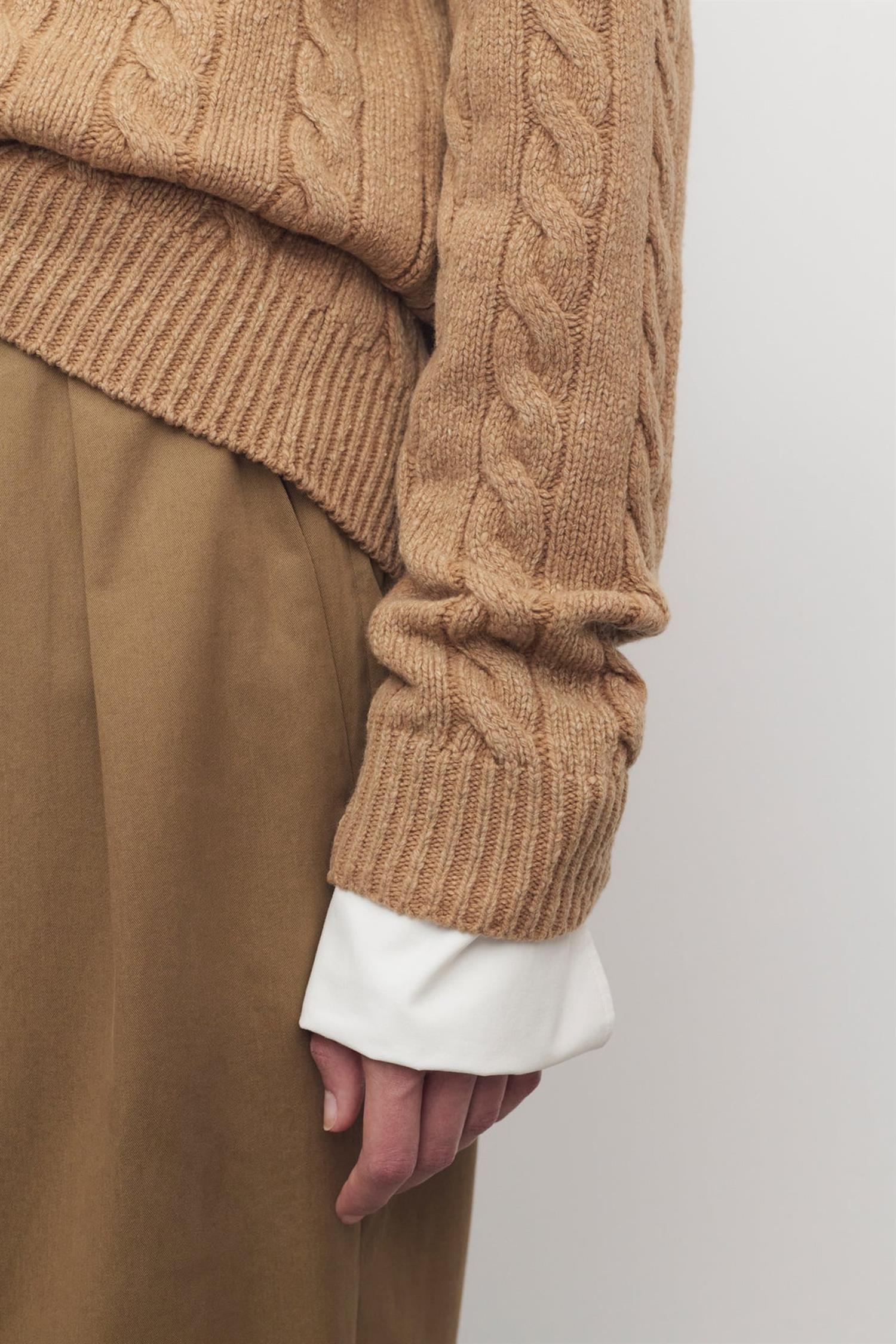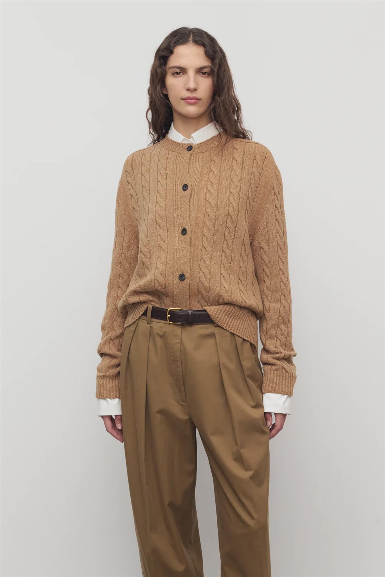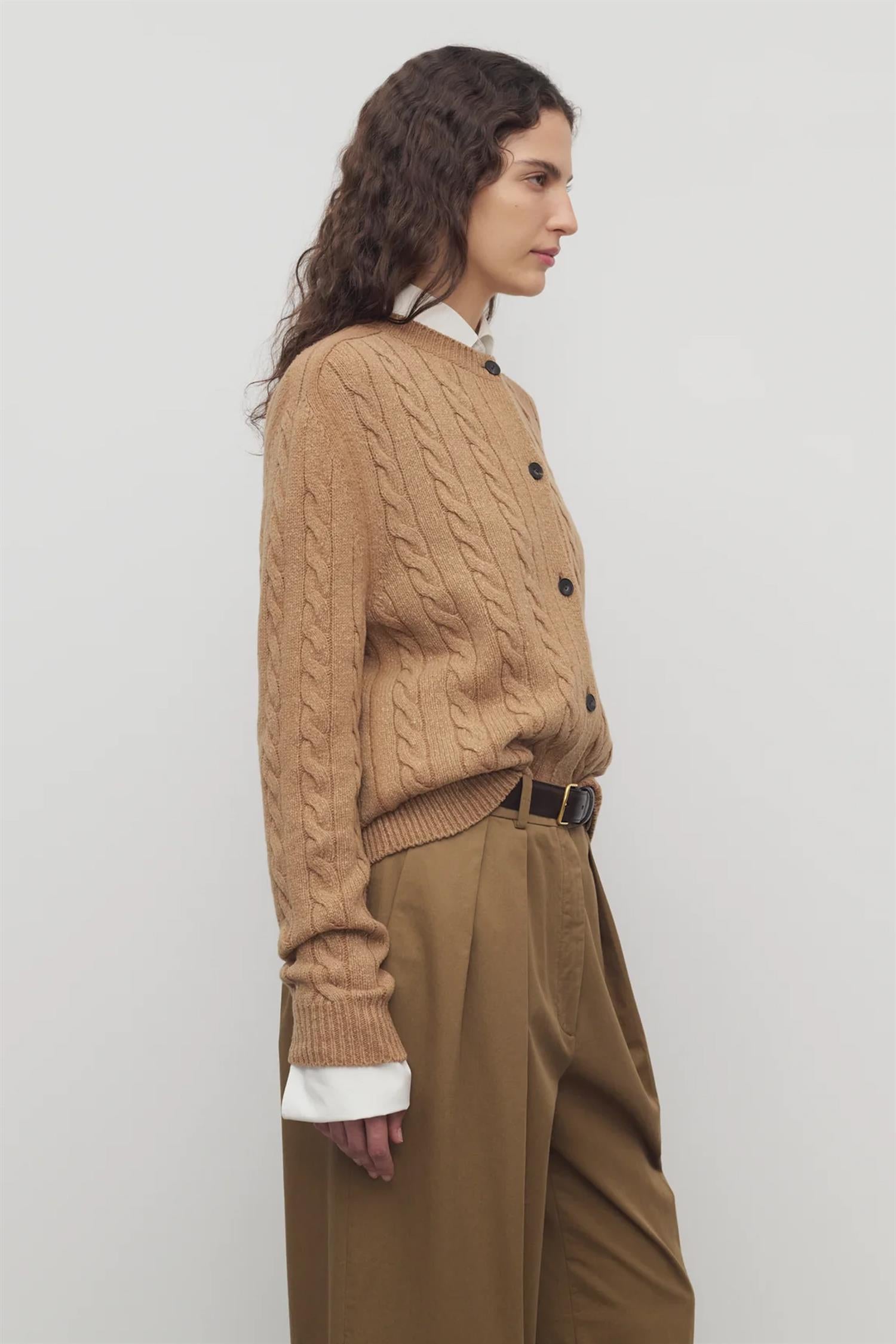 Loneke Cardigan fra The Row. Klassisk kabelstrikket cardigan i teksturert ull med avslappet passform, knappelukking foran og ribbestrikket halskant i mansjetter og fald.