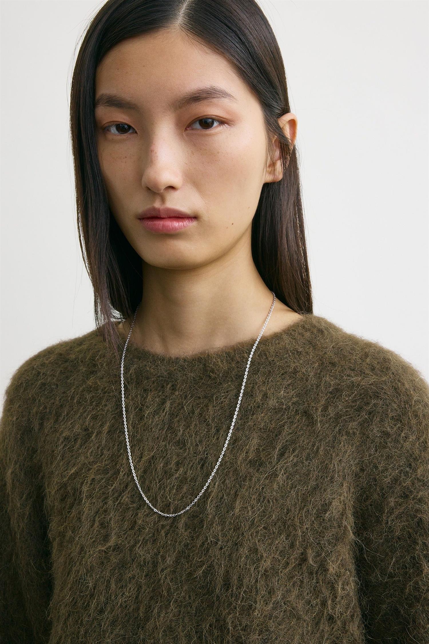 Boxy Alpaca Knit fra TOTEME er en signaturgenser strikket i en børstet alpakablanding som gir en lun, myk og luksuriøs følelse. Silhuetten er dramatisk boxy med ekstra voluminøse proporsjoner og lange ermer som fordrer både komfort og uttrykk, samtidig som den kan kombineres med mer strukturerte plagg for balanse.
