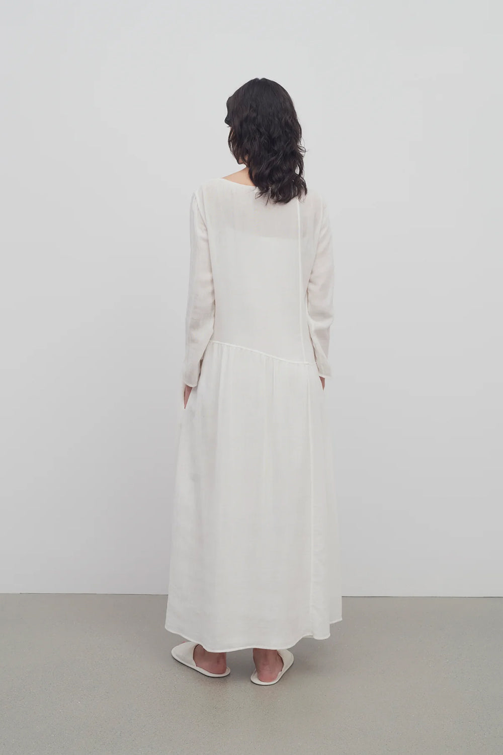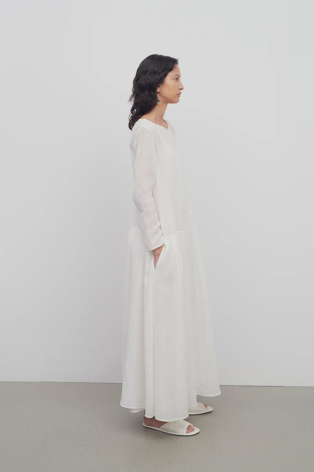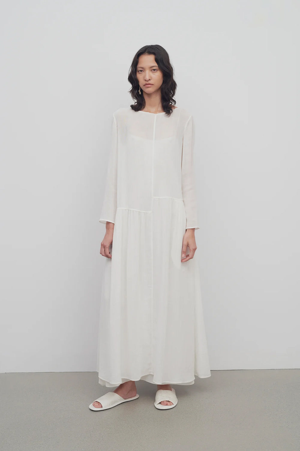 Callas Dress fra The Row er en delikat, florlett kjole i behagelig bomull. Den har en avslappet, rund hals, vidt skjørt og lange ermer. Legg merke til de asymmetriske panelene som gir designet et interessant uttrykk. Bruk kjolen med ballerinasko eller sandaler. Underkjole i silke medfølger.