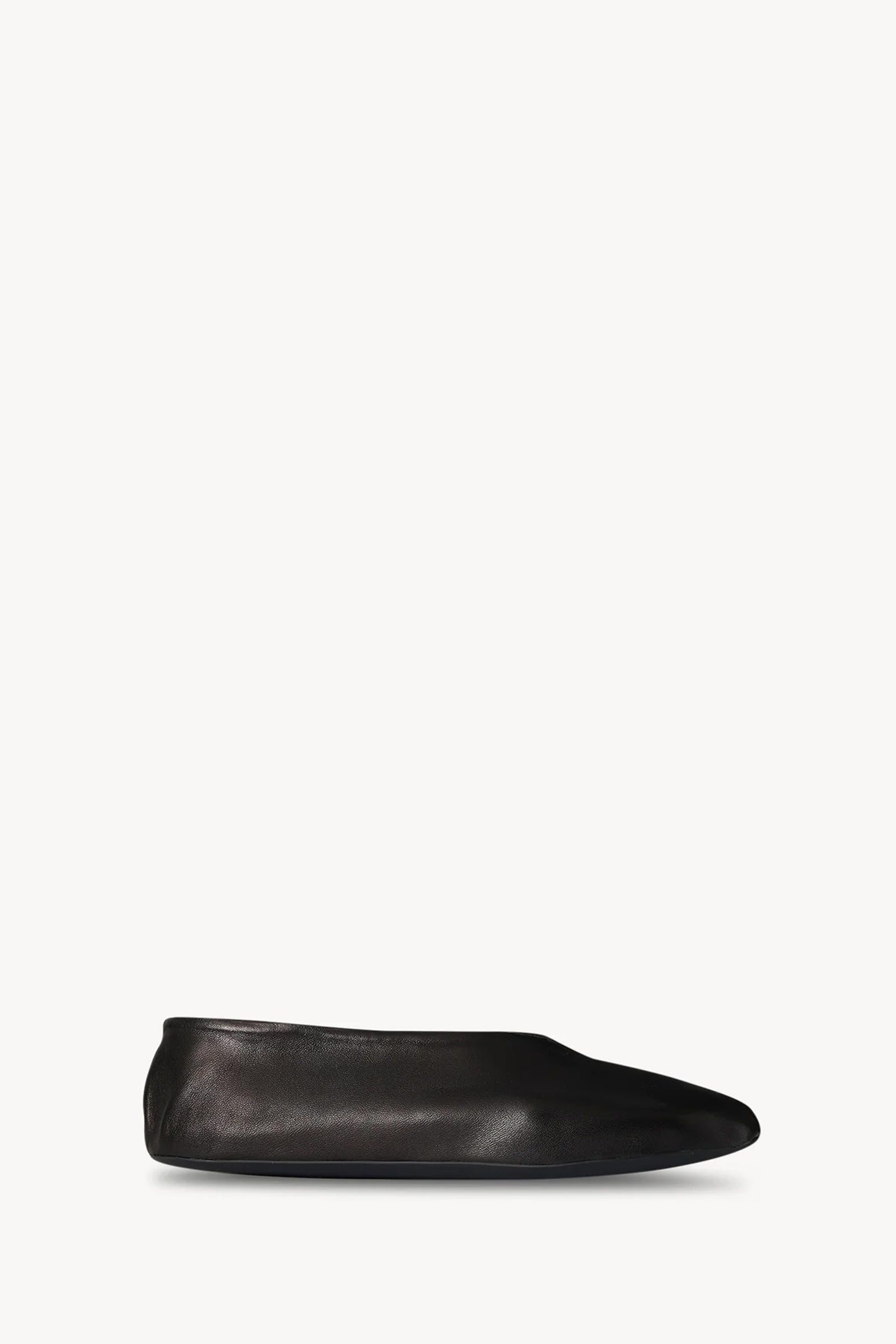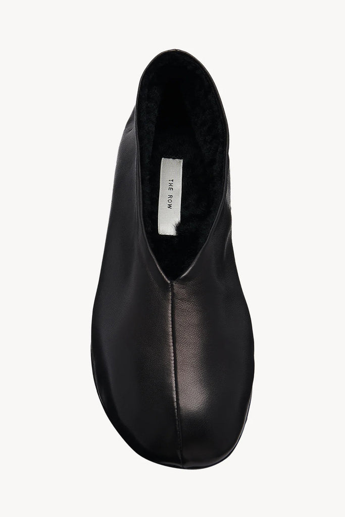 Lett og ekslusiv ballerina fra The Row i glatt nappa skinn med shearling på innsiden, flat såle og avrundet tå.