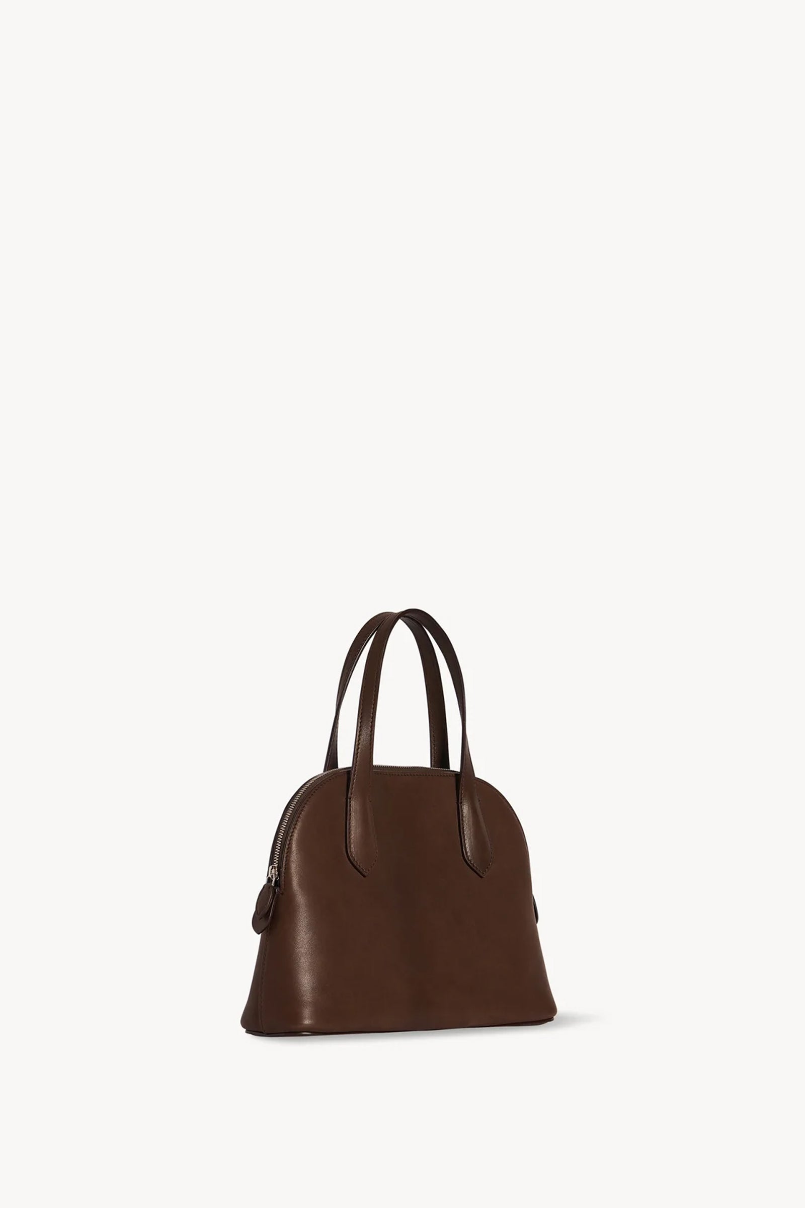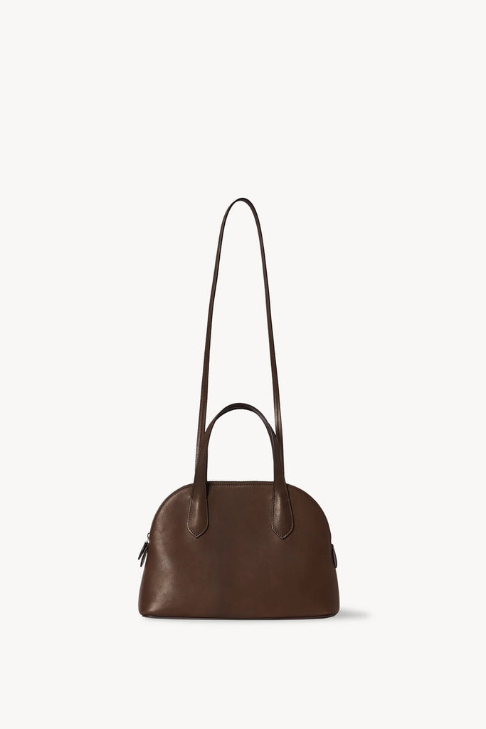 Medium Ingrid fra The Row. Elegant veske i polert saddleskinn med flate håndtak, avtakbar og justerbar skulderrem, glidelås lukking og fôret i nappa. Denne nye størrelsen bygger på den orginale Ingrid vesken og tilbyr økt kapasitet og allsidighet.