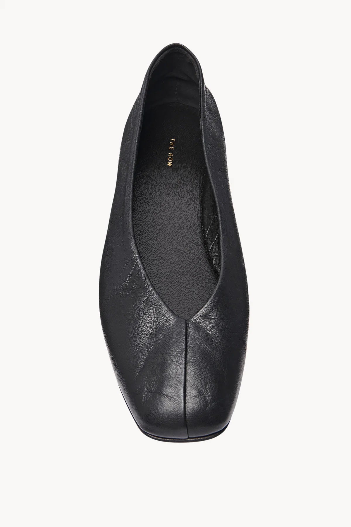 Eva Two Shoe fra The Row er inspirert av den klassiske ballerinaskoen. Den er laget i delikat, mykt nappaskinn, har en avrundet tå og en sofistikert v-form foran.