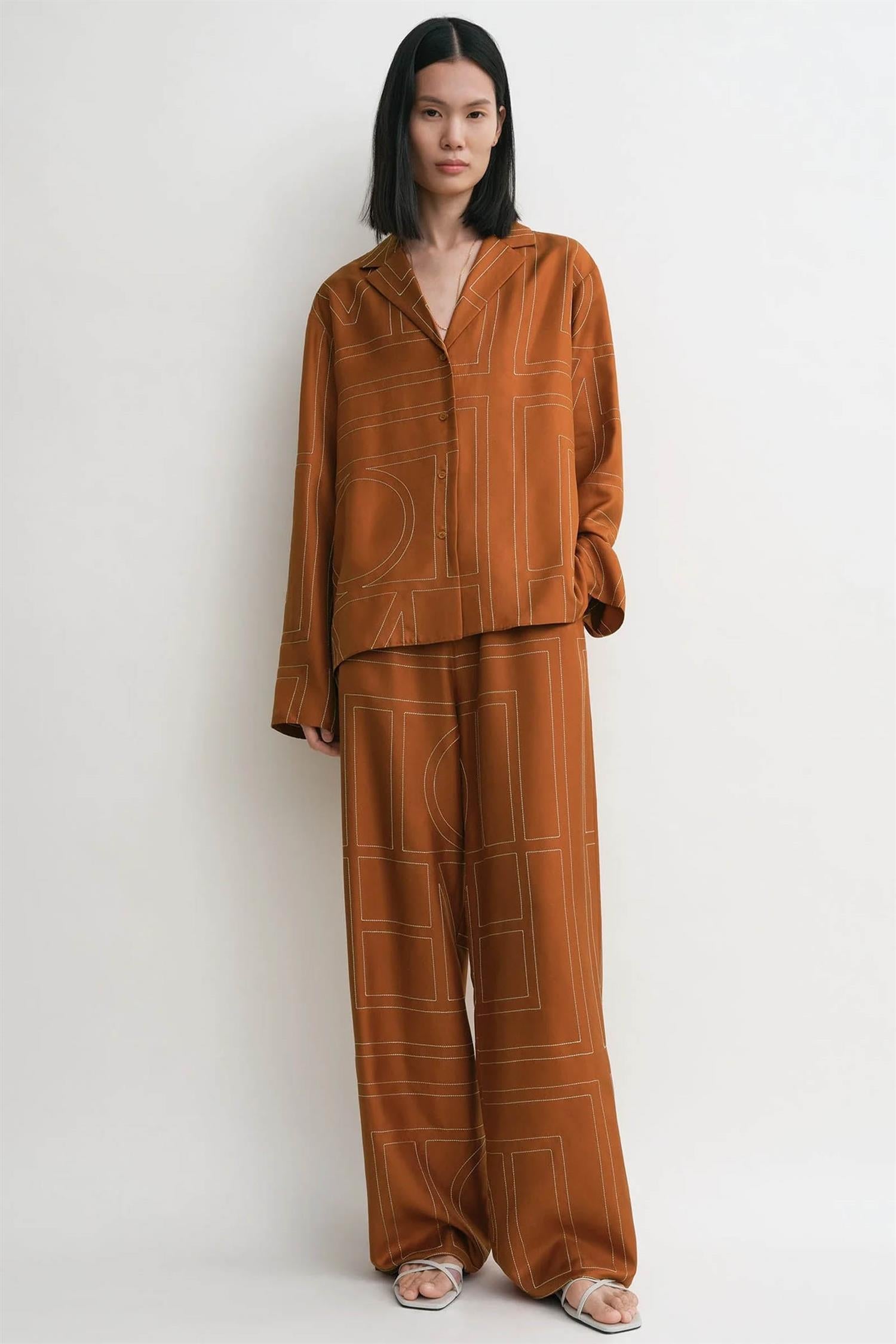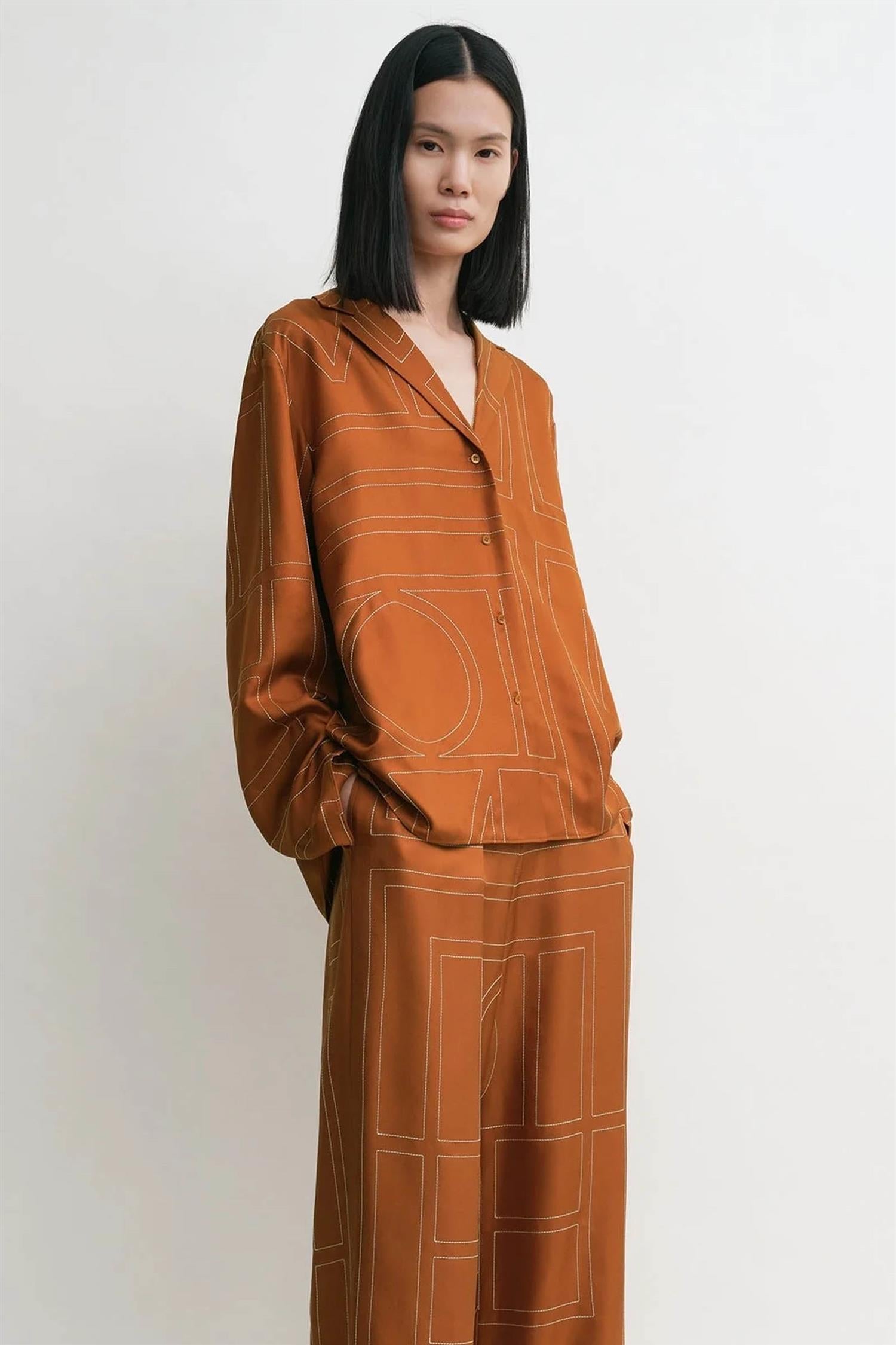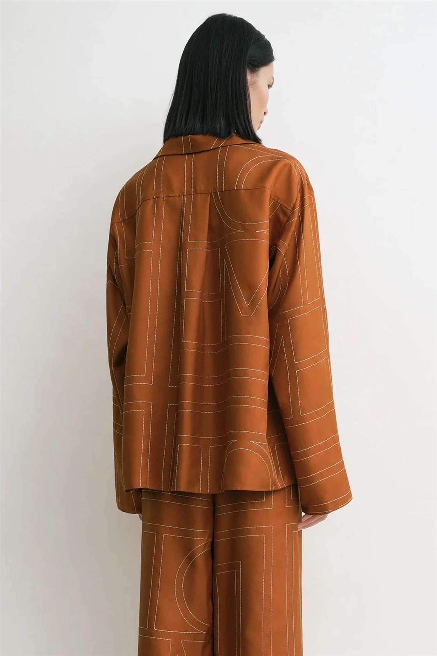 Monogram silk pj top
