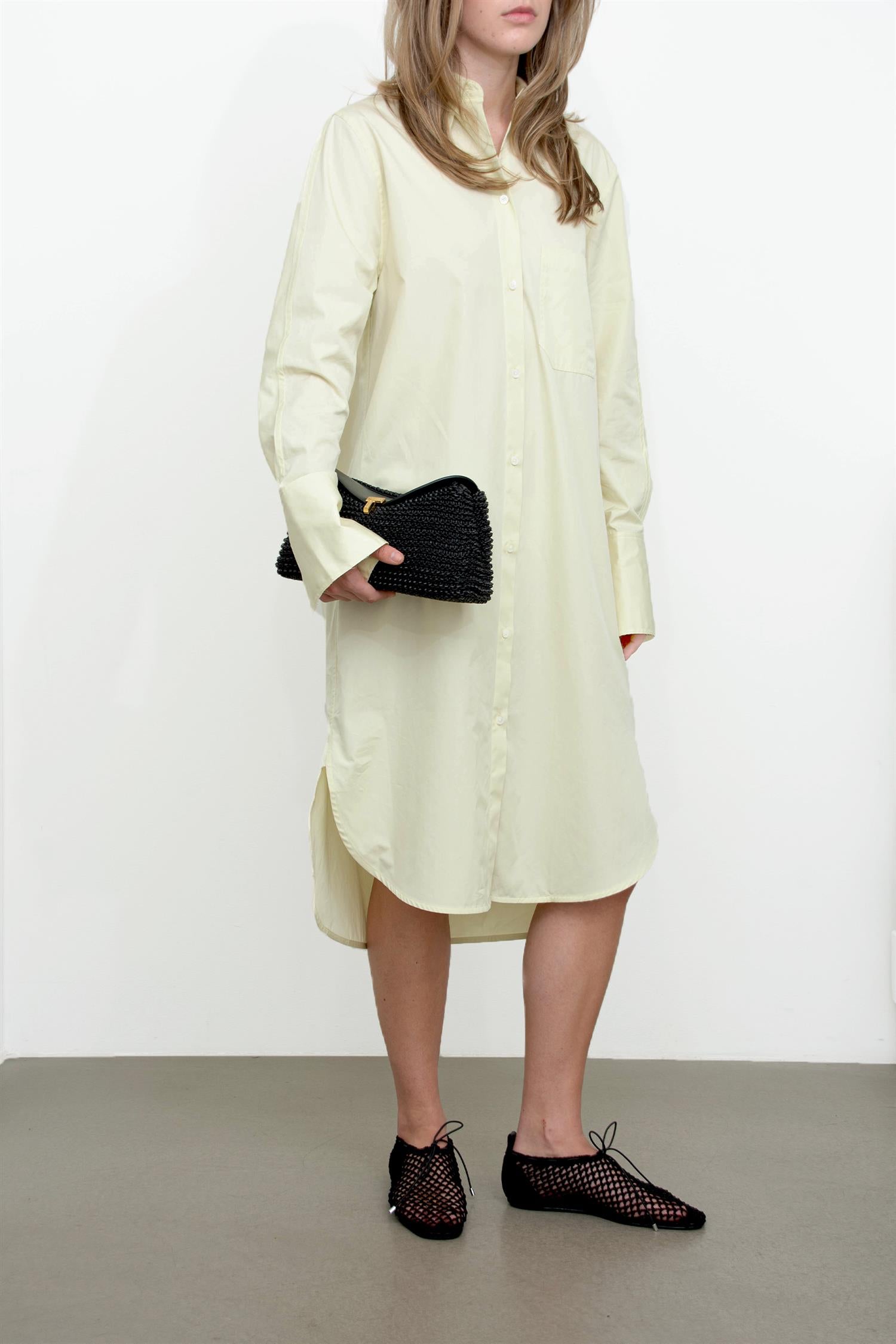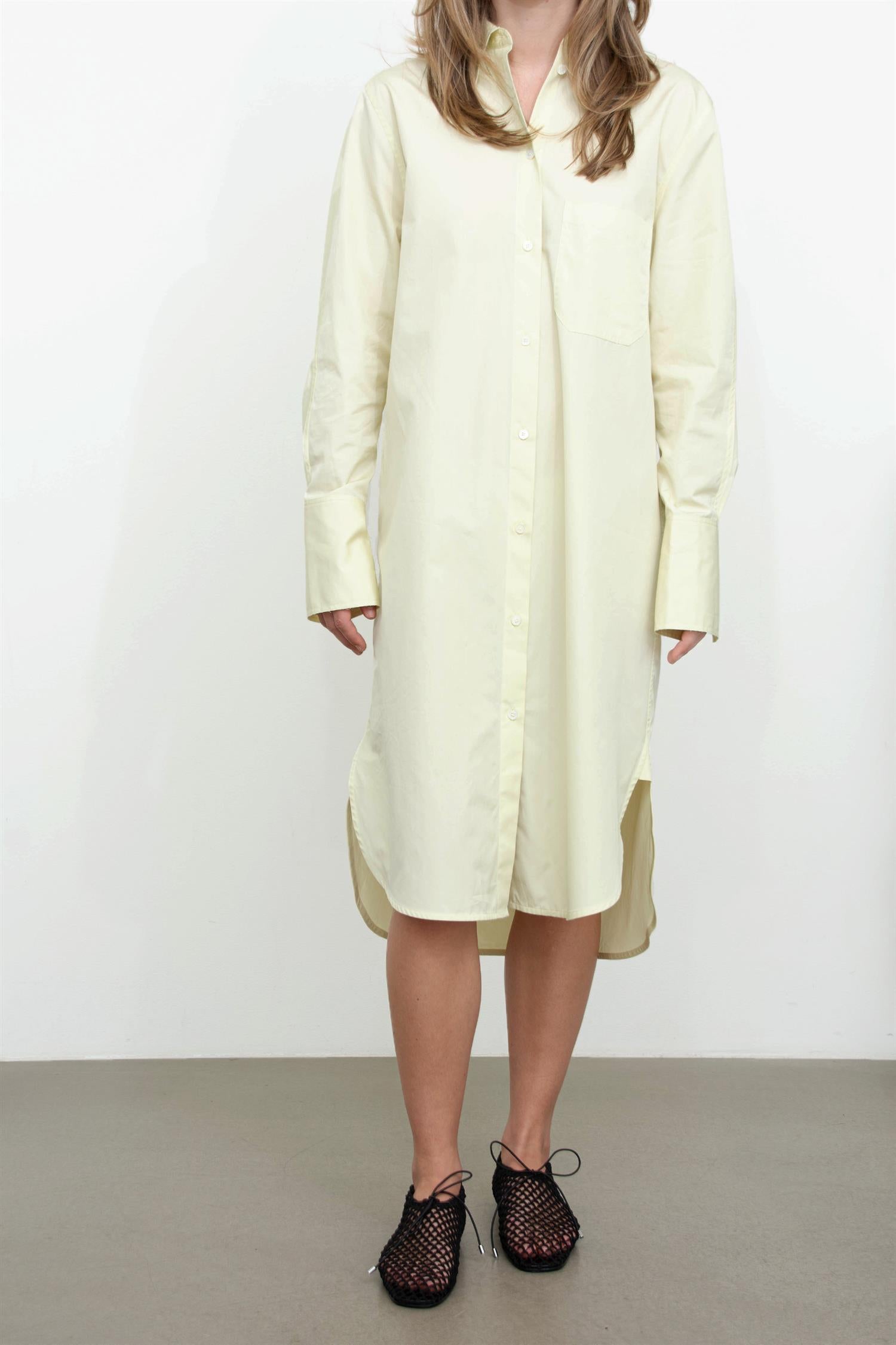 Oversized skjortekjole fra TOTEME i bomull med kimono-ermer, brystlomme og knappestolpe.