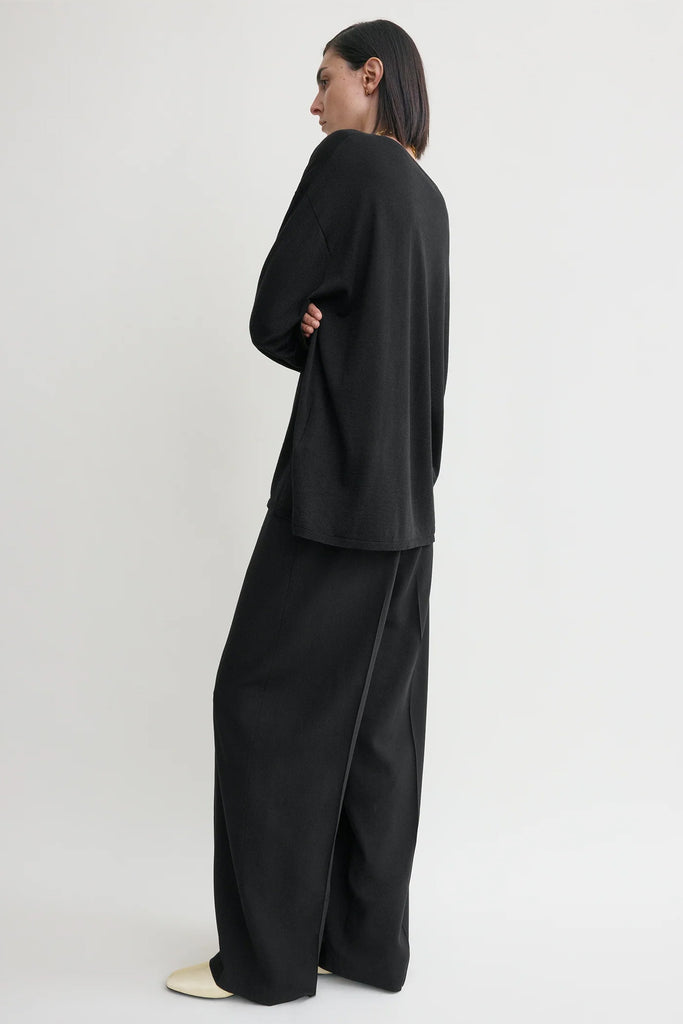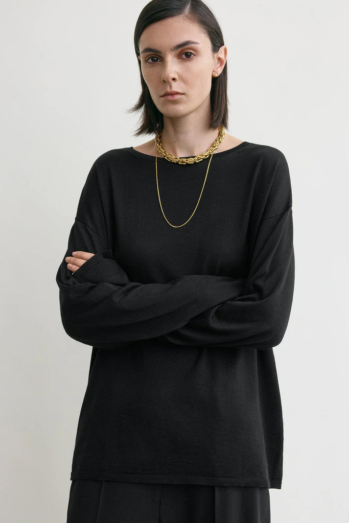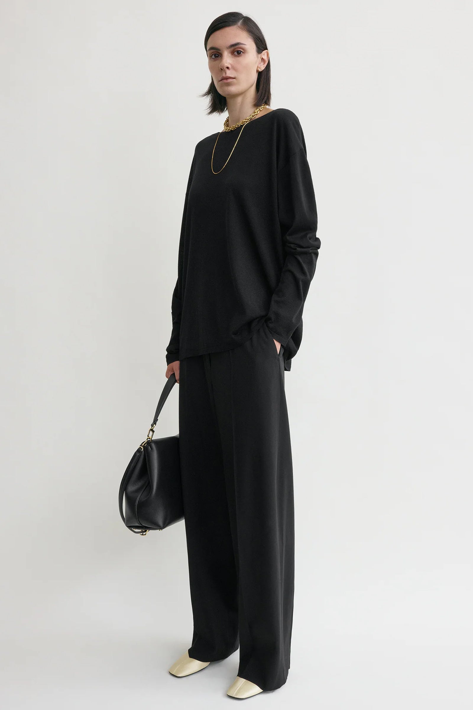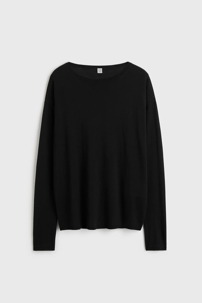 Longline knit fra Toteme er en raffinert og minimalistisk genser i en deilig ull blanding. Designet med en rund hals og en rett fasong, som gir den et tidløst uttrykk. Den glatte teksturen og den lette vekten gjør at den er ideell for lag-på-lag-antrekk eller alene for et rent, sofistikert utseende.