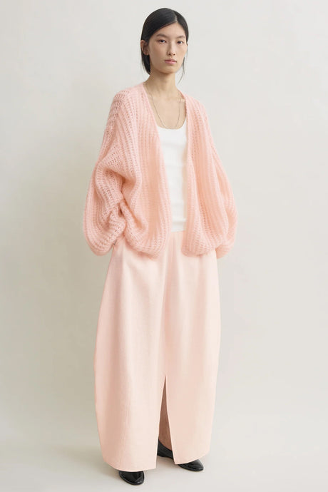 Puffed cardigan fra Toteme. Cardigan strikket med store proposjoner, laget av en lett og varm mohair blanding.