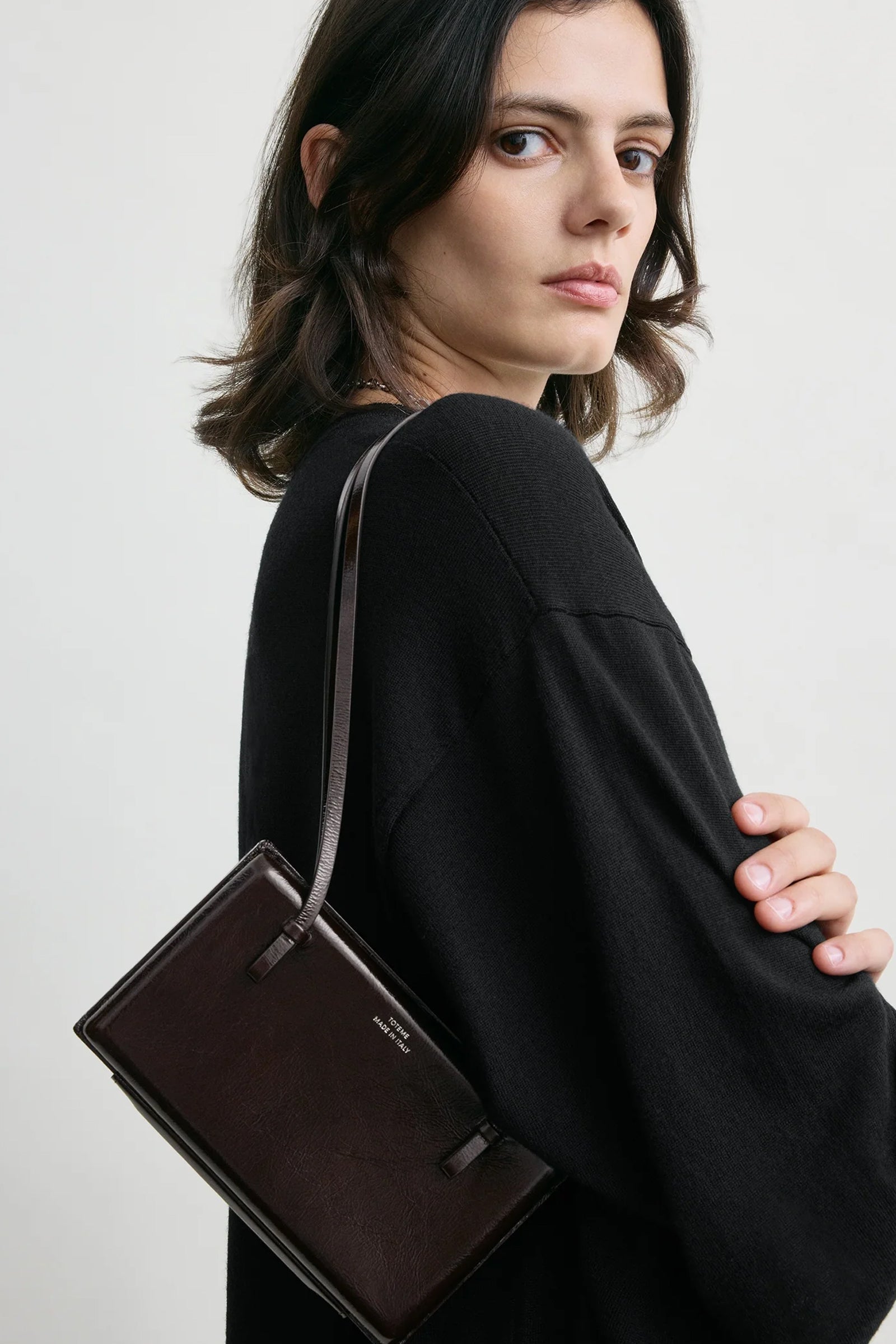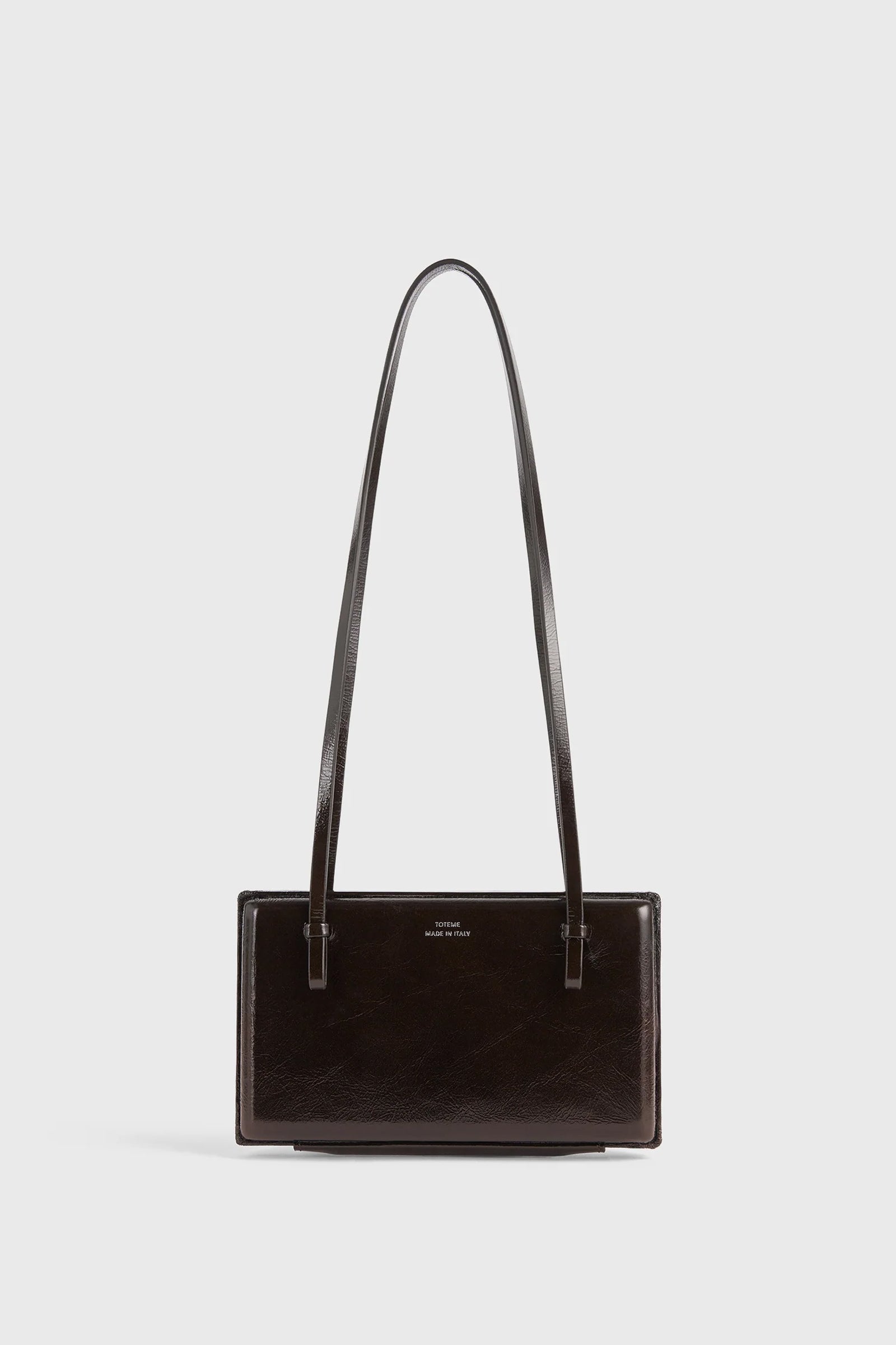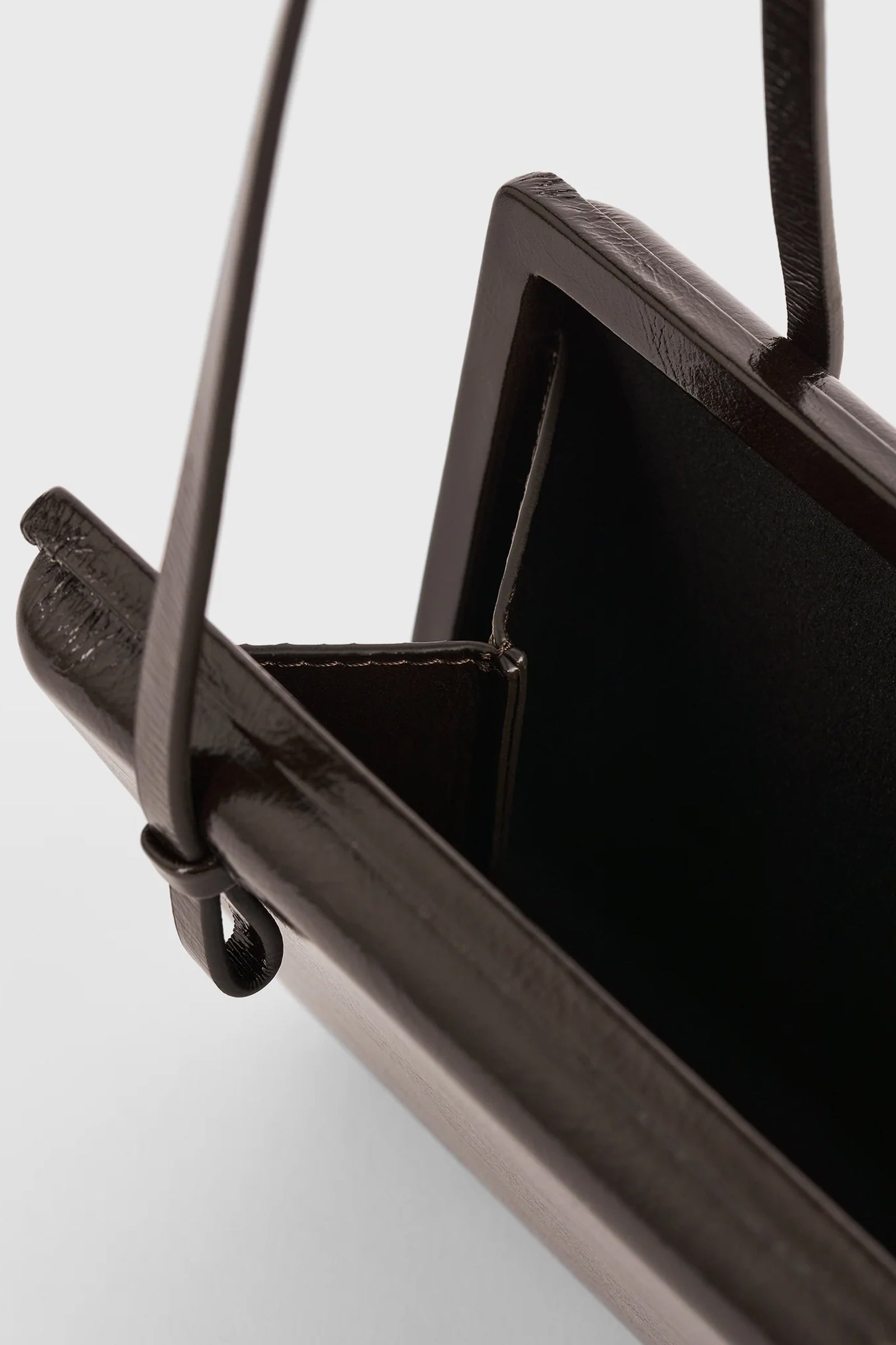 Cocktail Naplack Bag fra TOTEME er designet for moderne antrekk til fest og spesielle anledninger. Vesken har en kompakt, bokseformet silhuett i blankt og lett krøllet naplack-skinn, og bæres i to fine håndtak som gir et sofistikert uttrykk. Perfekt til å oppbevare mobil, leppestift og nøkler under kveldsarrangementer.