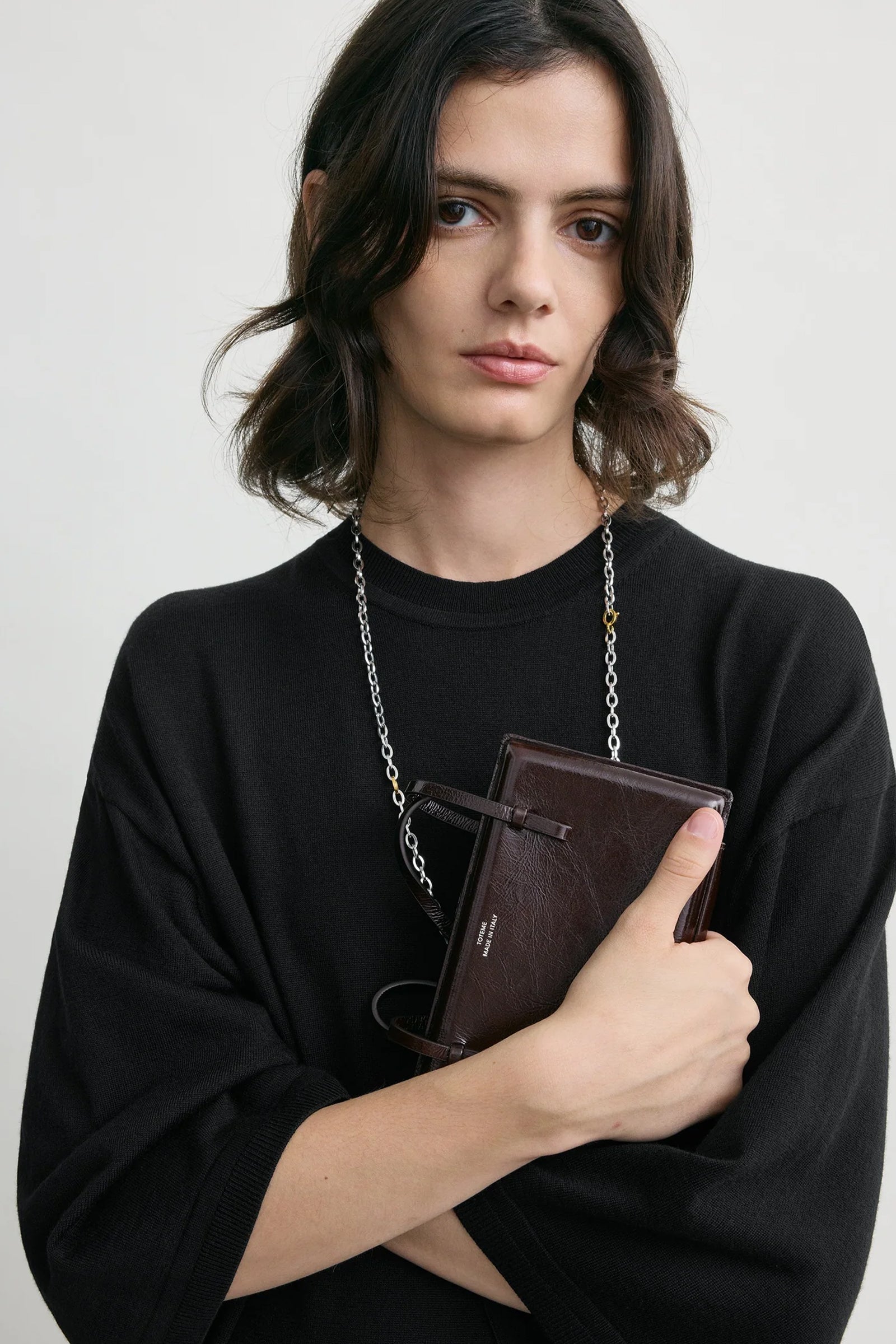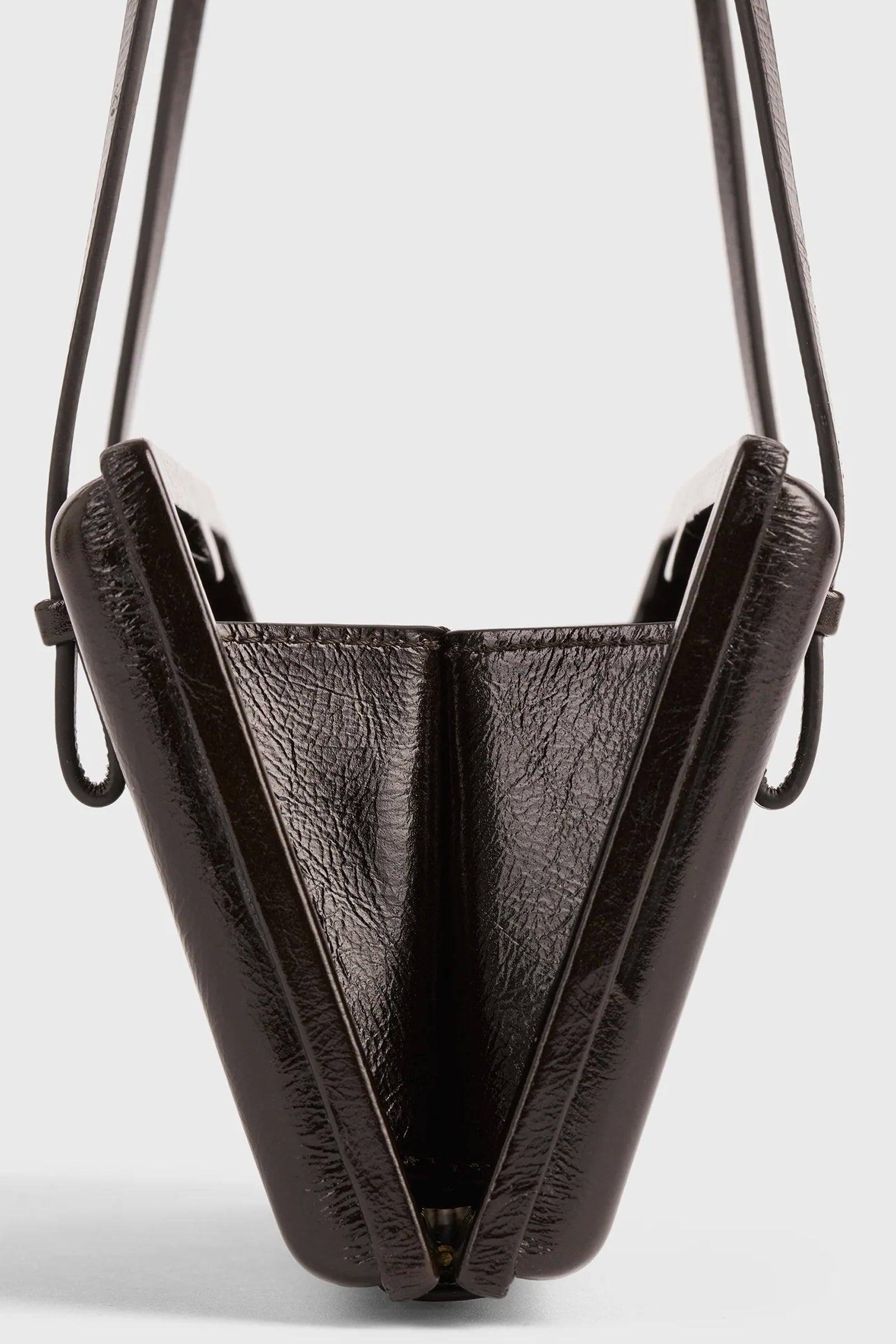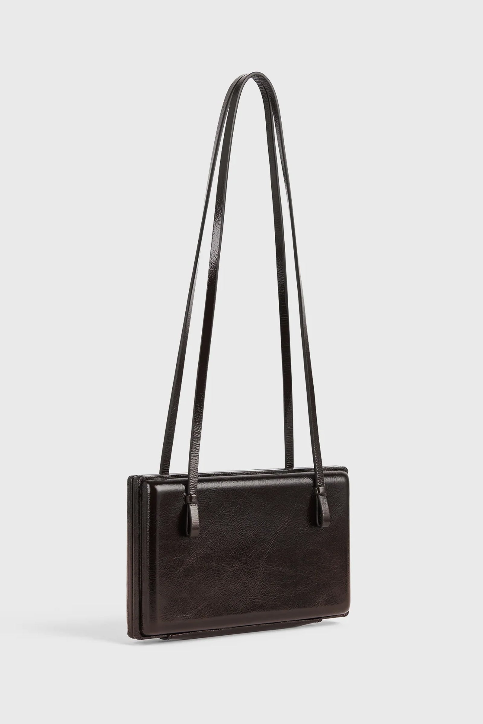 Cocktail Naplack Bag fra TOTEME er designet for moderne antrekk til fest og spesielle anledninger. Vesken har en kompakt, bokseformet silhuett i blankt og lett krøllet naplack-skinn, og bæres i to fine håndtak som gir et sofistikert uttrykk. Perfekt til å oppbevare mobil, leppestift og nøkler under kveldsarrangementer.