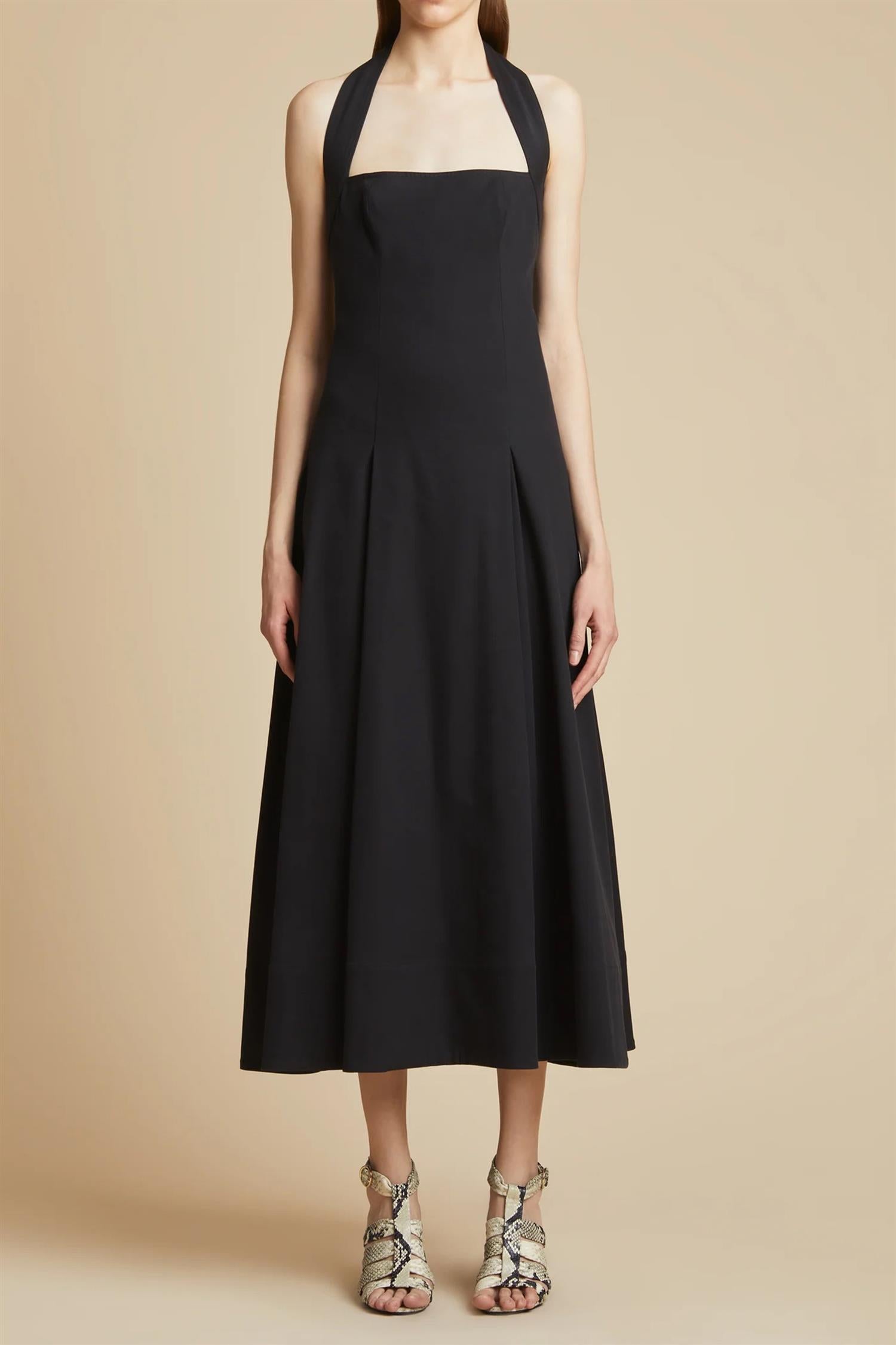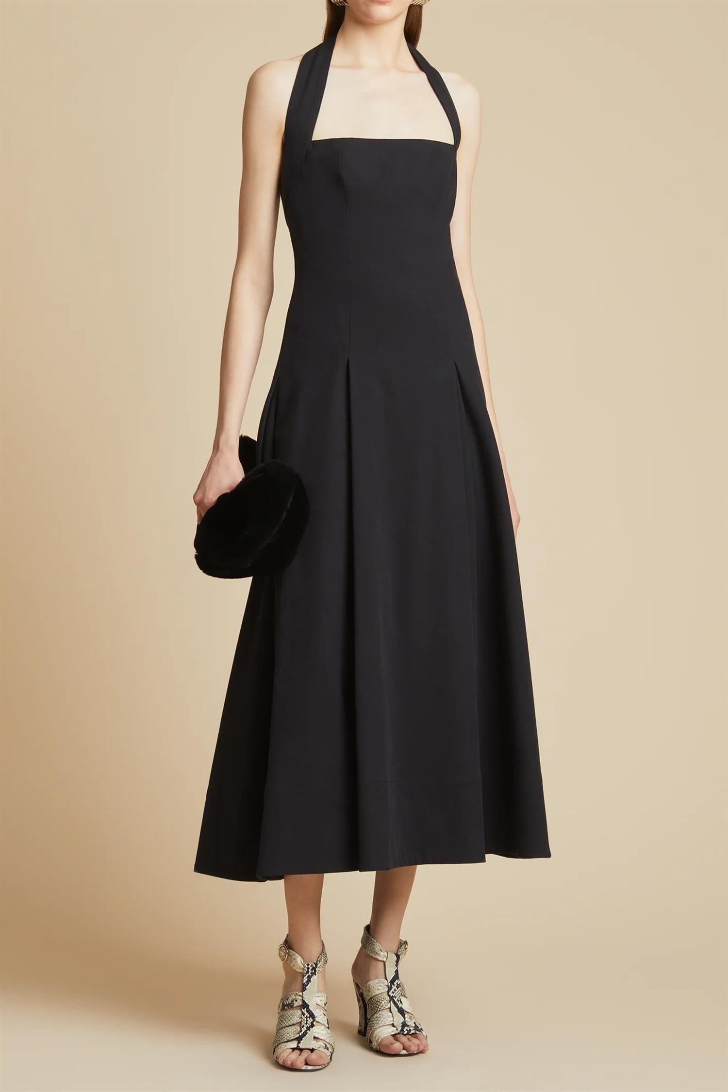 Midi-kjole med halterneck og pene folder. Den har en vakker, åpen rygg og lukkes med skjult glidelås. Bruk med høye hæler, ballerinasko eller sneakers.